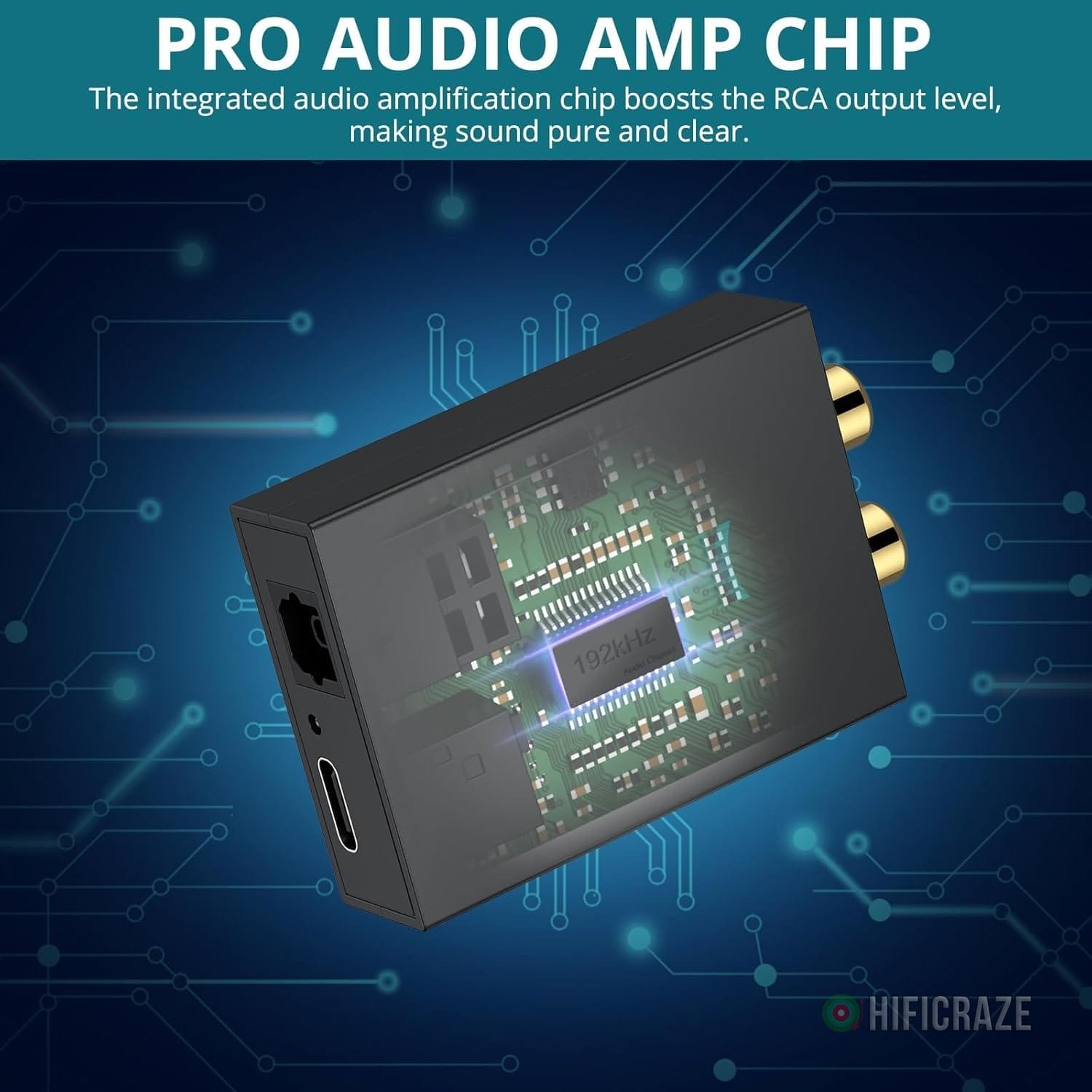 This converter supports an impressive 192 kHz optical to RCA capability, ensuring professional modulation of audio signals. It provides a seamless connection to stereo amplifiers, delivering impeccable sound quality.