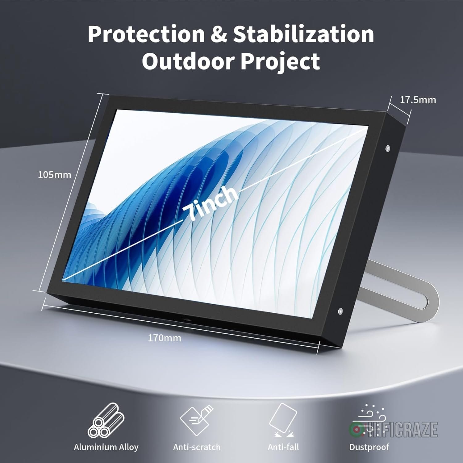 The 7-inch Raspberry Pi Screen Monitor is an efficient portable monitor designed for diverse applications, from security systems to personal projects. With a sleek aluminum shell, it is both compact and durable, making it an excellent choice for Raspberry Pi enthusiasts.