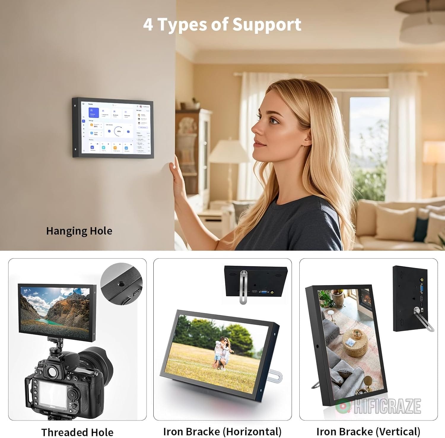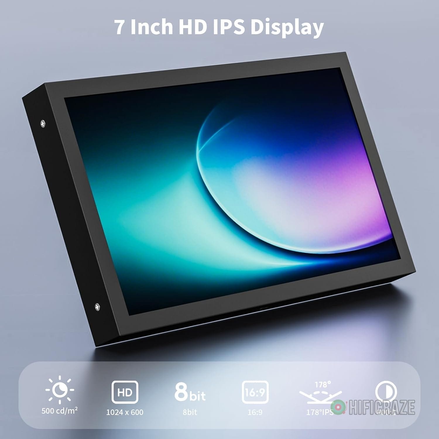 Offers a resolution of 1024×600 with a 178° IPS viewing angle and 500 nits brightness for clear and vibrant visuals.Built-in Audio:
