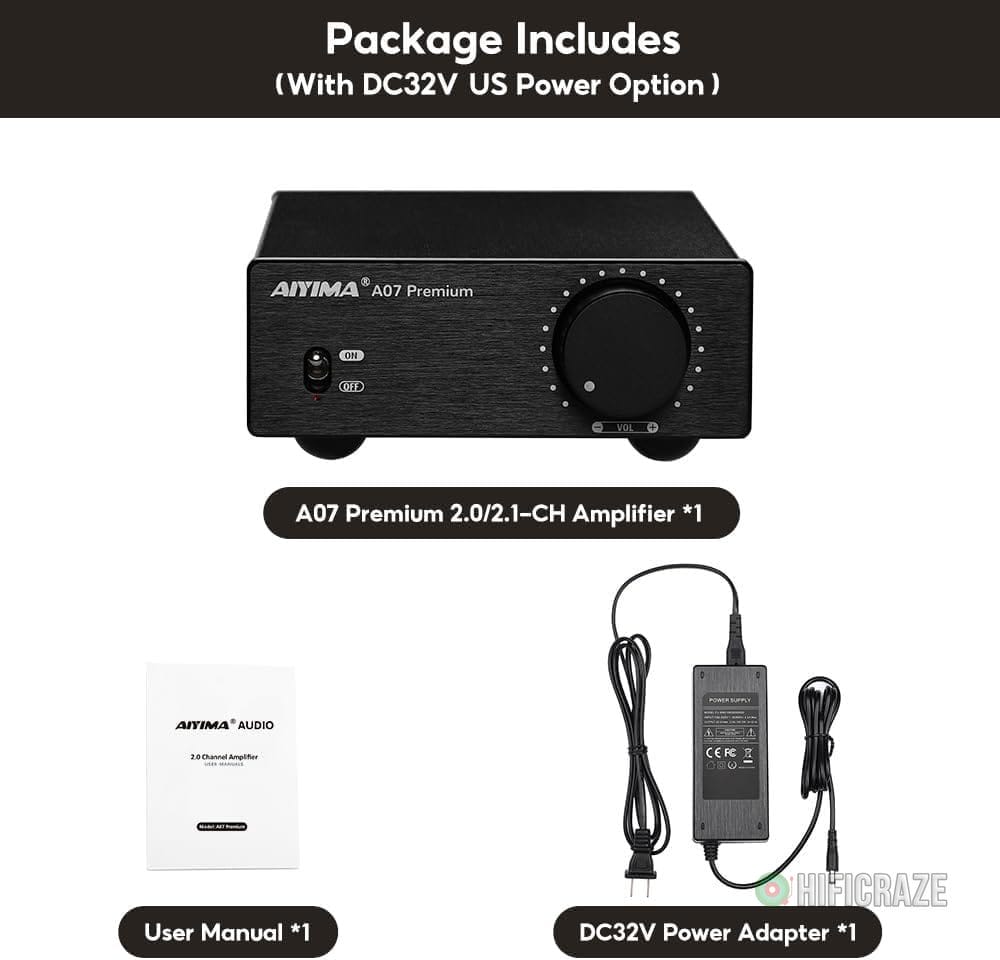 Specification: AIYIMA A07 Premium TPA3255 Power Amplifier 300Wx2 HiFi Class D Amp Mini 2 Channel Stereo Amplifier for Desktop Bookshelf Speaker Home Audio Theater System with DC 32V Power Adapter