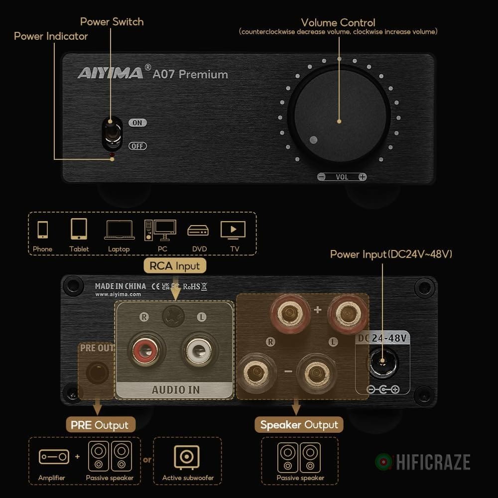 The AIYIMA A07 Premium Audio Amplifier is a compact and powerful mini amp that caters to various audio applications. Known for its excellent frequency response, substantial power output, and low distortion, the A07 is an affordable choice for powering most home audio bookshelf speakers.