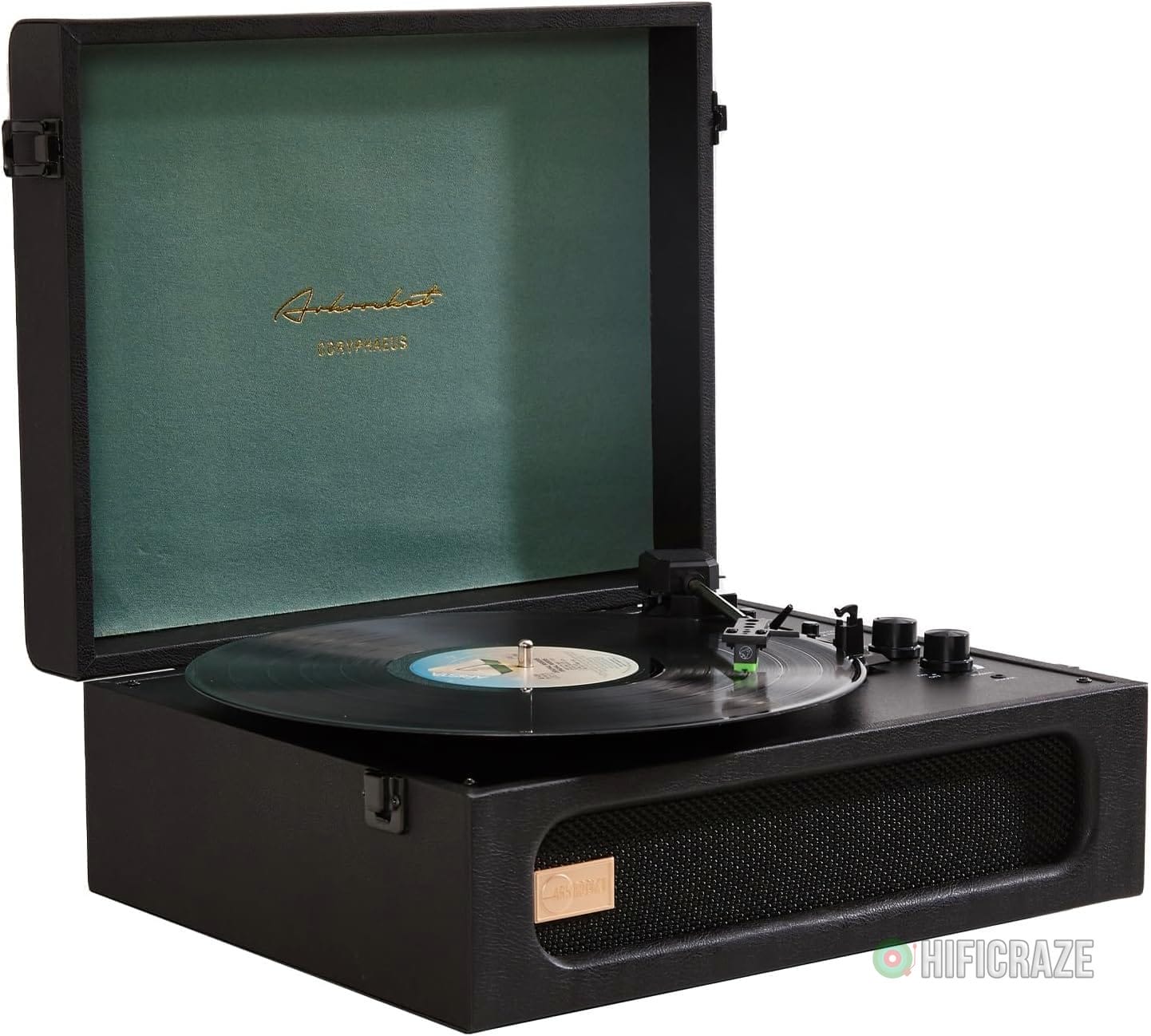 Specification: Arkrocket Coryphaeus Vinyl Record Player 3-Speed Bluetooth Input and Output Built-in Speakers with Magnetic Cartridge Auto Off (Black Green)