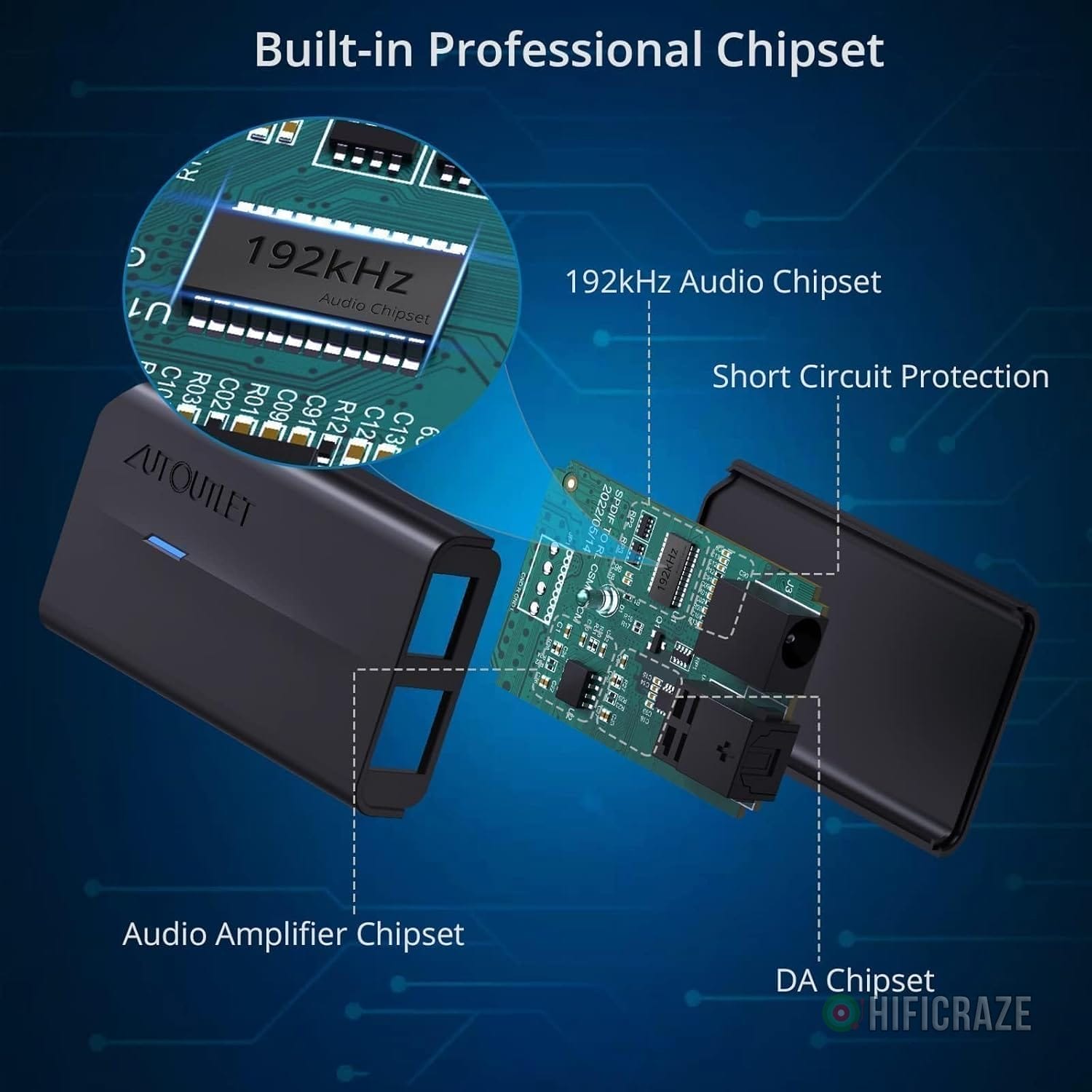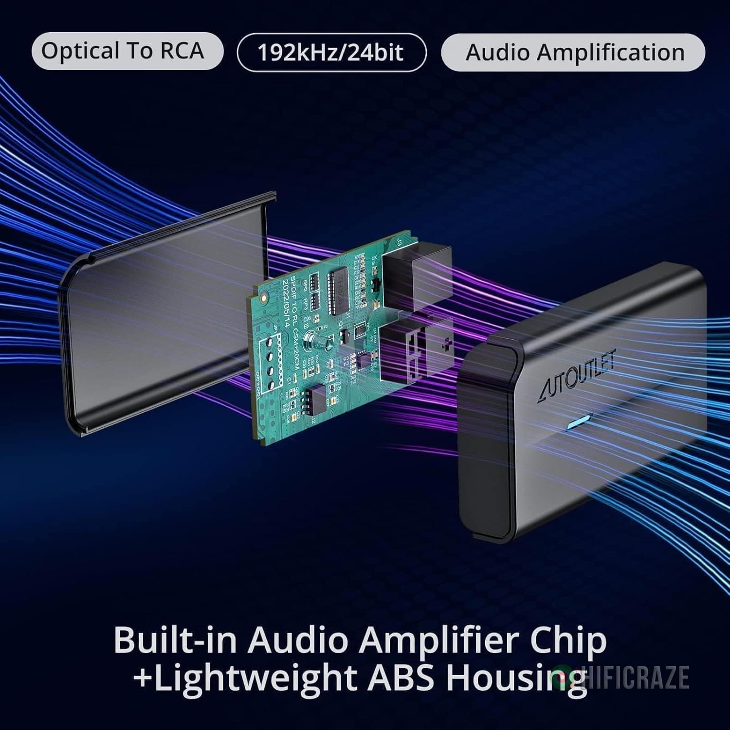 The AUTOUTLET 192 kHz Optical to RCA Converter is designed for professional audio signal processing, allowing you to connect stereo amplifiers and convert optical digital audio signals to RCA analog signals efficiently.