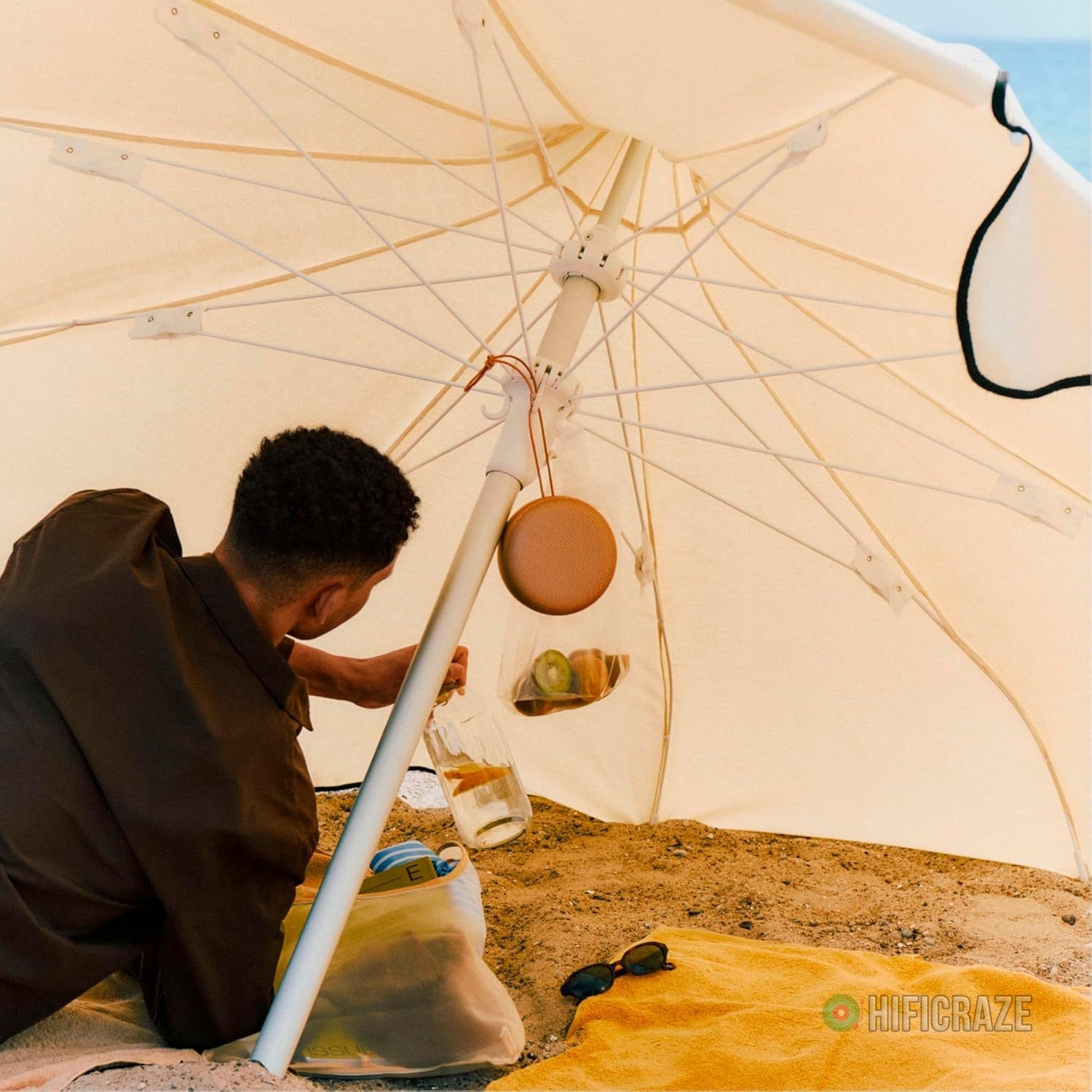 The IP67 dust and waterproof certification means the speaker can handle various environments, from pool parties to rainy hikes. Made with a rugged aluminum dome and leather strap, it’s built to withstand the elements.