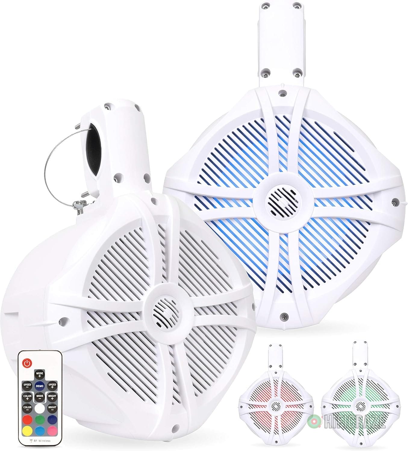 Specification: BELVA BWT8LED 600W Peak (300W RMS) 8″ White Marine Tower Speakers with Multi-Color LED Lighting and Remote for Boats/ATV/UTV/Motorcycles/SxS/Golf Cart