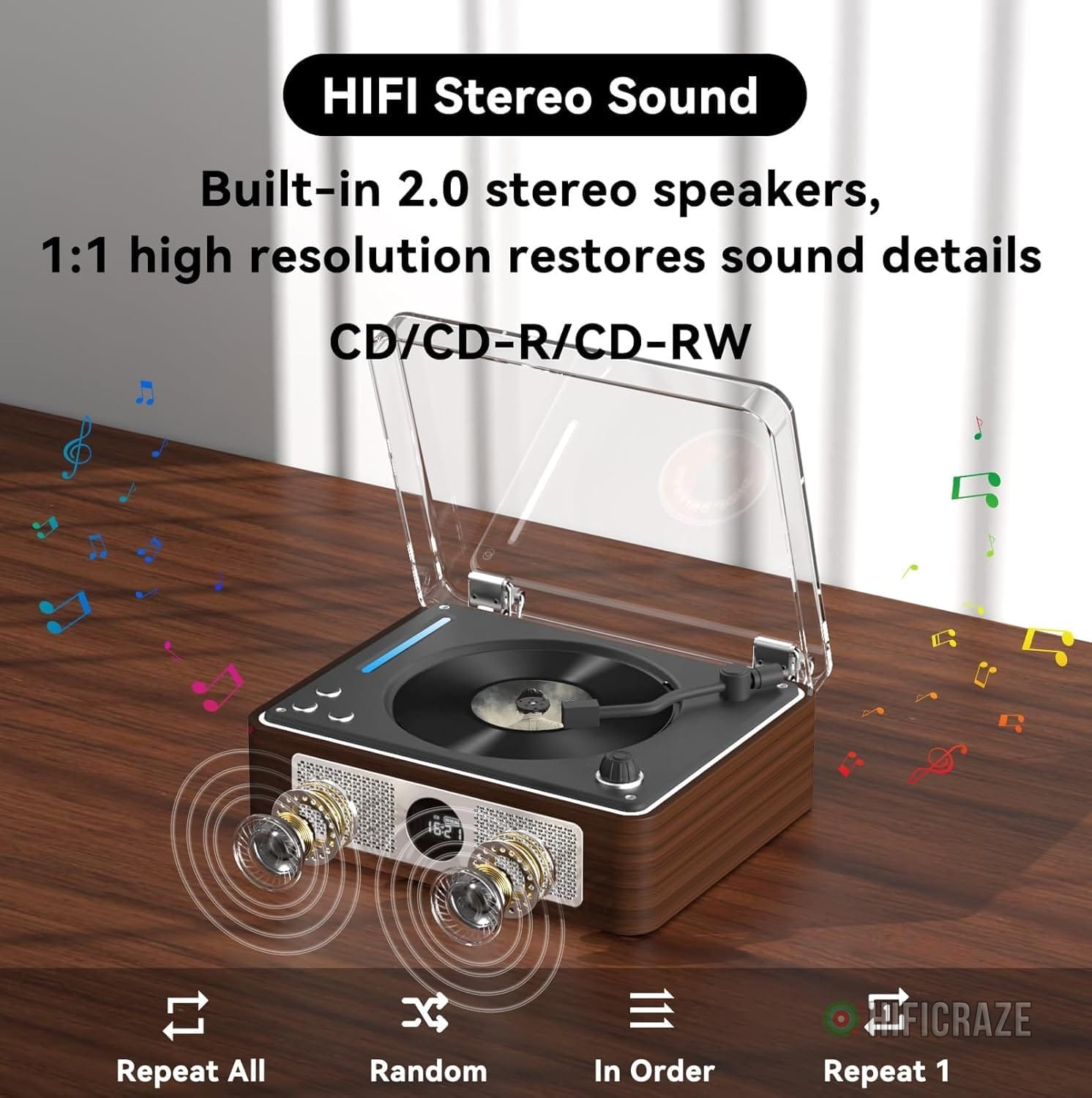 - Multi-Functional Playback: Supports 5 playback modes: CD, Bluetooth, USB, AUX, and Optical. Compatible with formats like CD, CD-R, MP3, WMA, WAV, APE, FLAC.