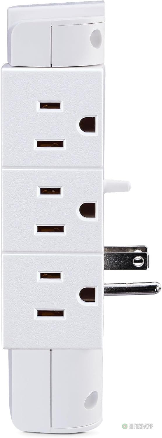 The compact design incorporates 2 banks of swivel outlets, which are perfect for tight spaces. This thoughtful feature allows for easy access to power outlets behind furniture, such as bookshelves or desks.