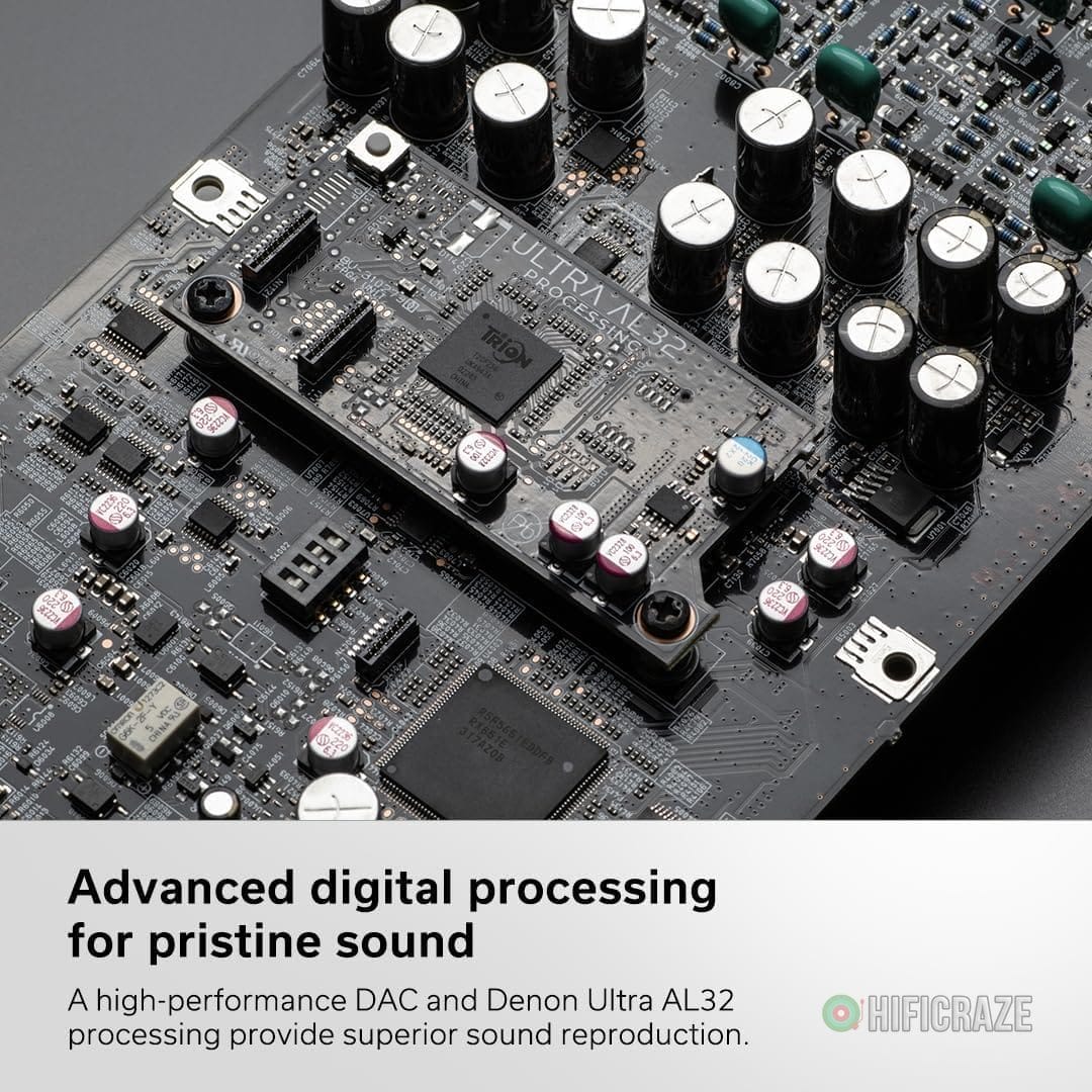 Denon’s S.V.H. (Suppress Vibration Hybrid) disc loader minimizes vibrations, ensuring accurate and noise-free music playback. This technology plays a crucial role in maintaining sound quality across all formats.