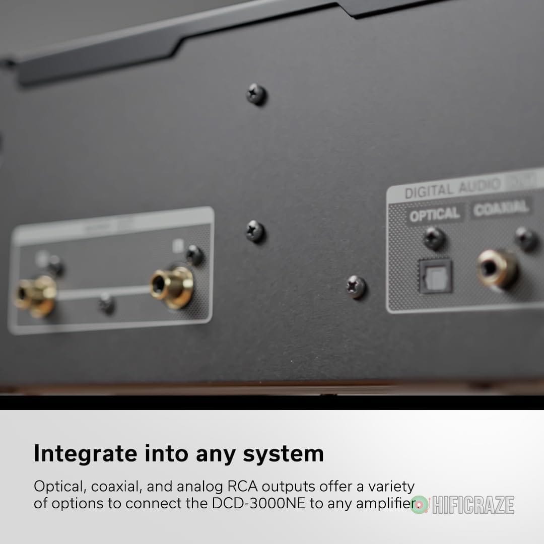 With dedicated optical, coaxial, and analog RCA outputs, the DCD 3000NE connects seamlessly with other audio devices, enhancing your Hi-Fi home audio setup. It pairs particularly well with the Denon PMA-3000NE amplifier.