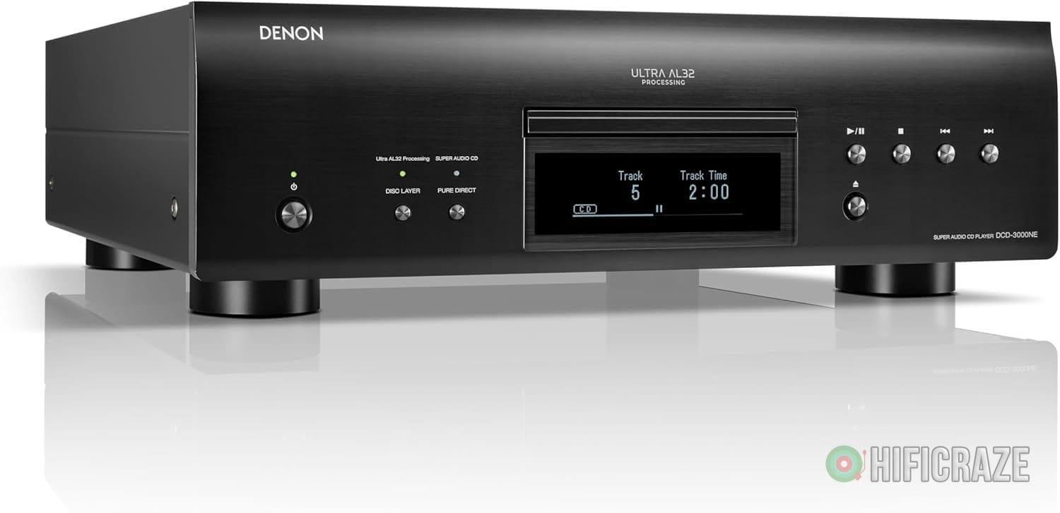 Specification: Denon DCD-3000NE CD/DVD-R/RW/SACD Player, High-Performance 384kHz/32-bit DAC, 7th Gen Ultra AL32 Processing, Supports DSD, MP3, WMA, AAC, WAV, FLAC, ALAC, & AIFF Files, Pure Direct Mode, Black