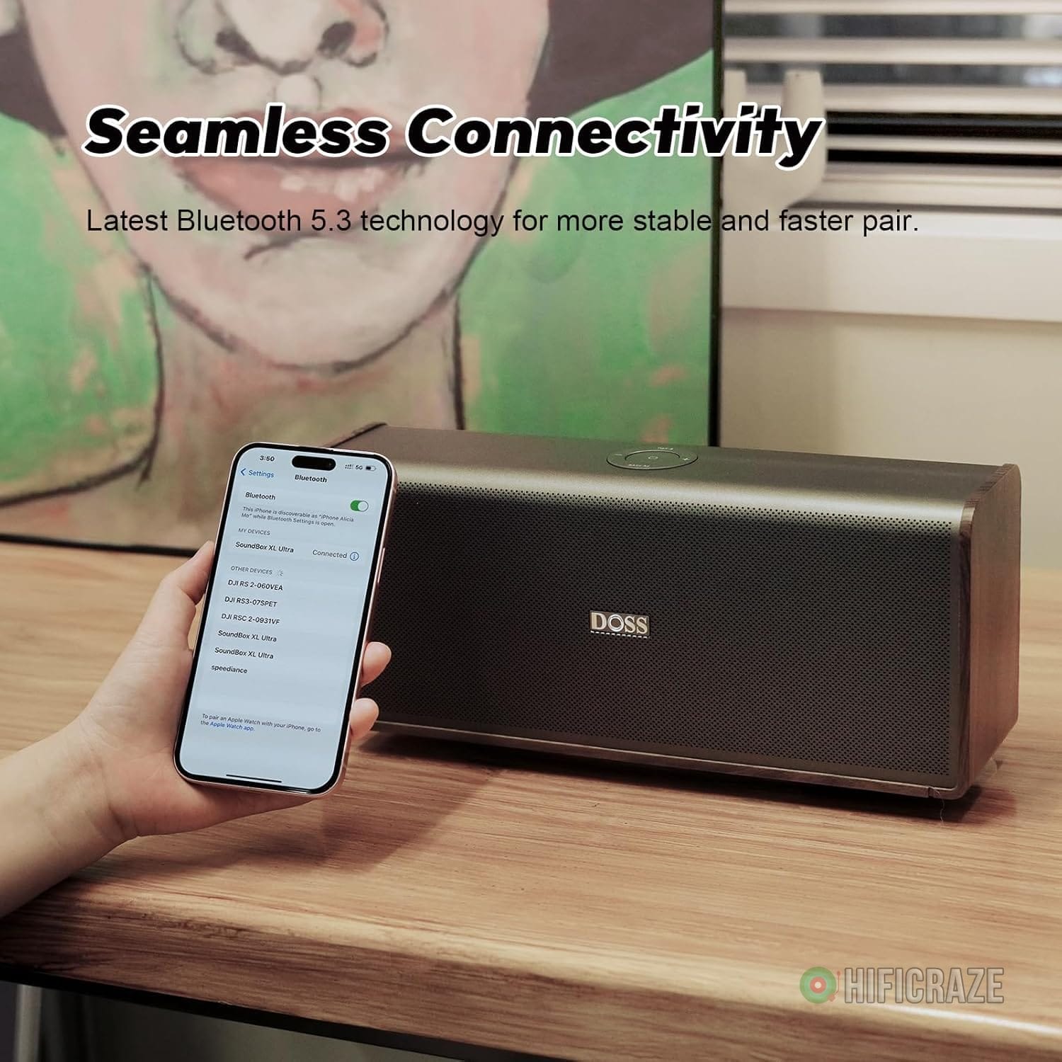 Specification: DOSS SoundBox Ultra Bluetooth Speaker with 2.1 Channel Audio, 80W Superior Sound with Deep Bass, Two DSP Technologies, 18H Playtime, BT 5.3, Wireless for Home, Office, Livingroom