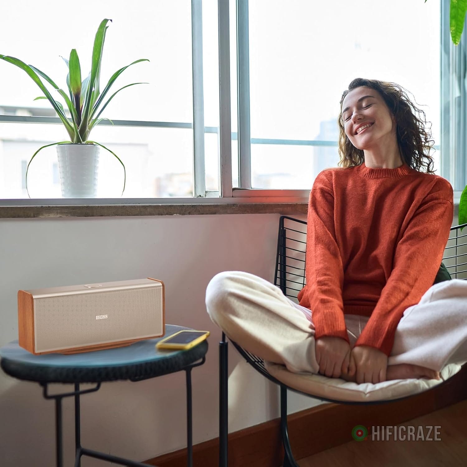 Crafted from premium-quality metal with a faux wood grain texture, this speaker boasts a modern yet classic aesthetic. Its compact and refined design seamlessly fits into your kitchen counter, living room, office desk, bookshelf, or bedroom nightstand, adding elegance to any space.