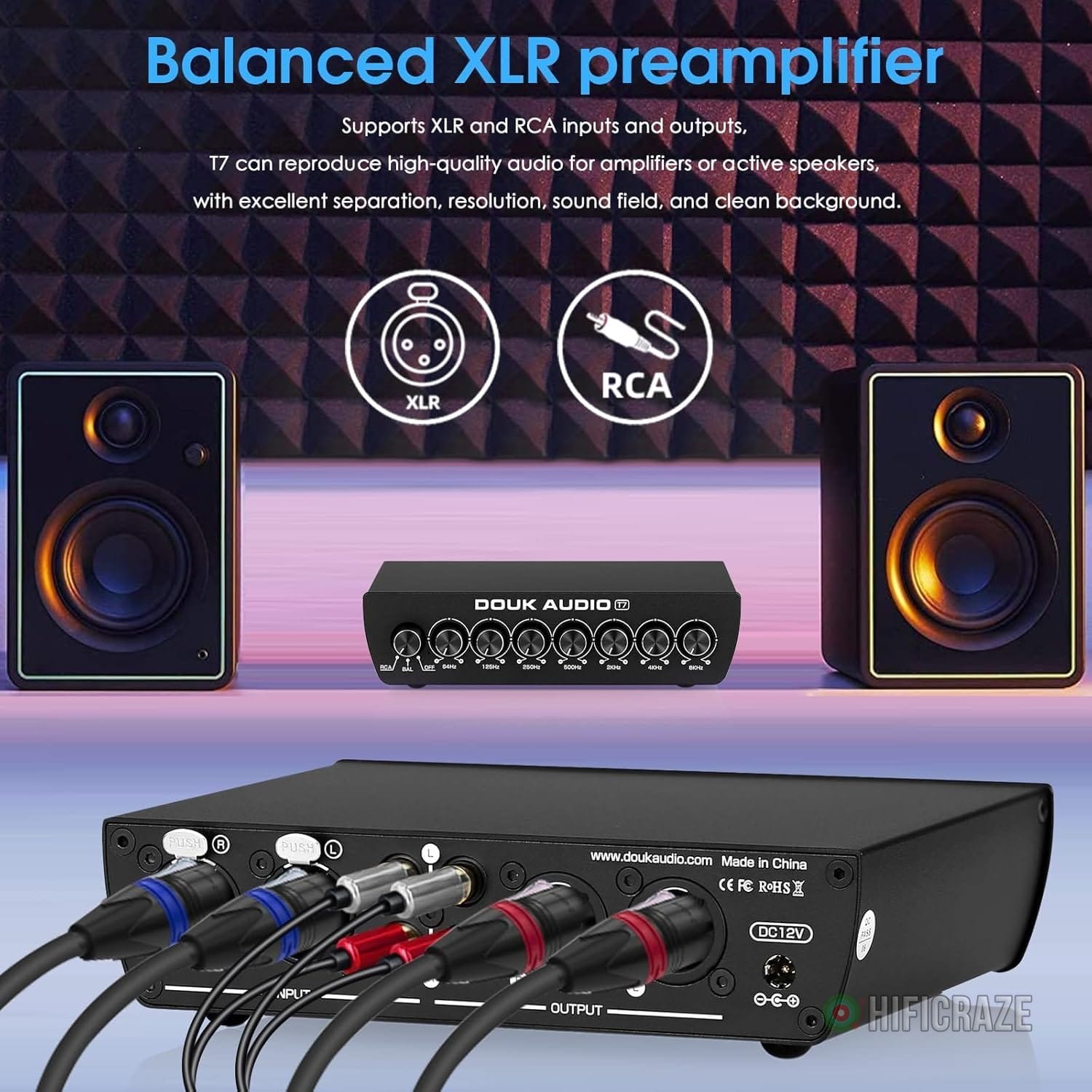 Specification: Douk Audio 7 Band Equalizer Balanced EQ Audio Preamp with XLR RCA Input and Output for Home Stereo, Amplifier, Computer Speaker (T7)