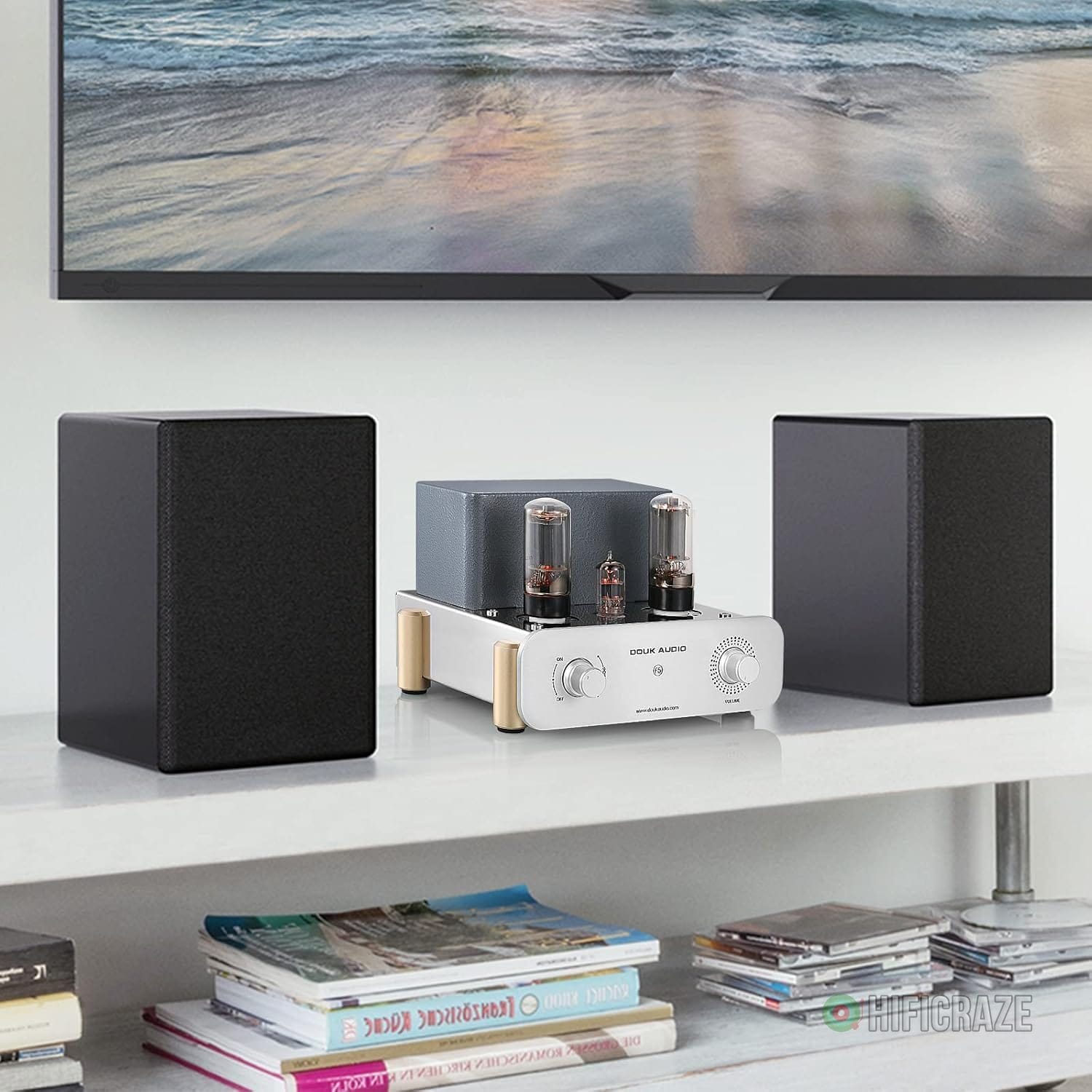 The Douk Audio F5 is a Pure Class A Hi-Fi Vacuum Tube Amplifier that promises to elevate your listening experience with its exceptional sound quality and elegant design. This amplifier is designed to cater to audiophiles seeking a rich auditory experience.