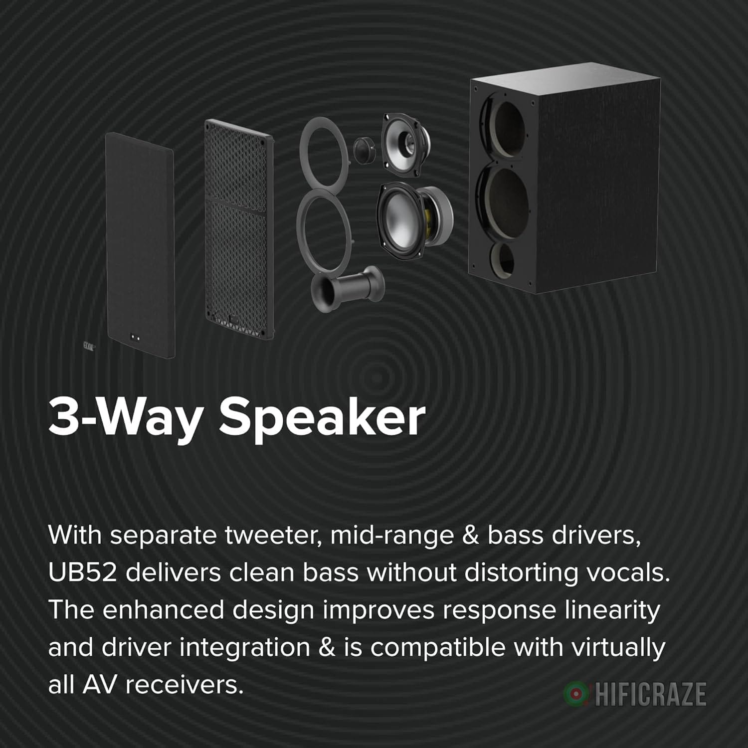 Specification: ELAC Uni-Fi 2.0 UB52 Bookshelf Speakers (Pair), Black (UB52-BK)