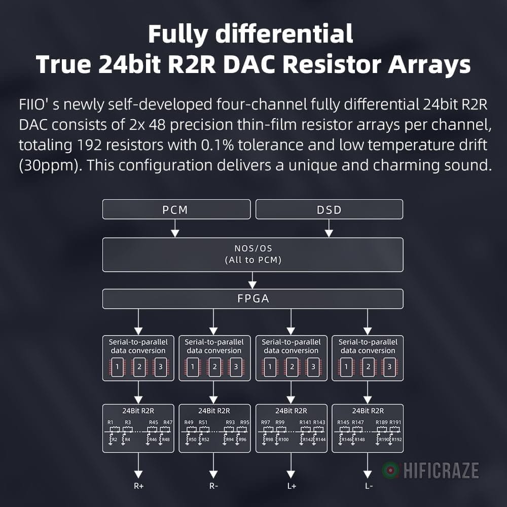 The K11 R2R utilizes a four-channel fully differential 24-bit R2R resistor array, which is composed of 192 high-precision ultra-thin film resistors. This design promises exceptional audio clarity and a dark background, significantly improving your listening experience.
