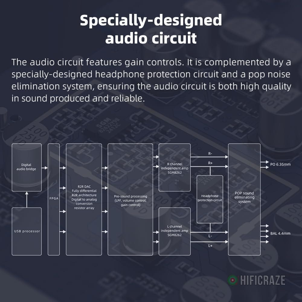 The K11 R2R incorporates a professionally designed amp circuitry, featuring Ti OPA1642 as the Low-Pass filter and dual SGM8262 operational amplifiers. The output power reaches up to 1300mW x 2, making it ideal for driving demanding headphones. It also offers three gain modes for compatibility with different gear.