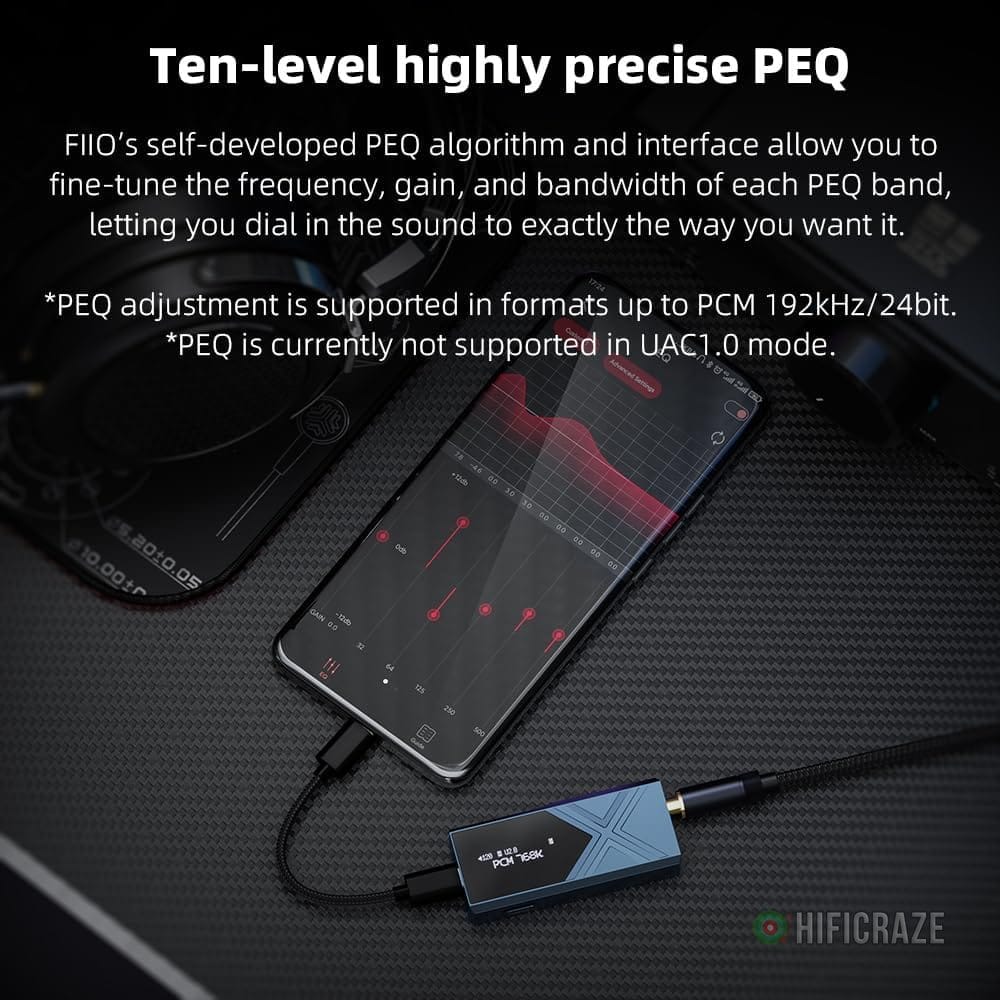 – **Personalized Sound Adjustment**: Utilize the FiiO Control APP to customize the PEQ, correcting headphone frequency responses and simulating curves of popular headphones.