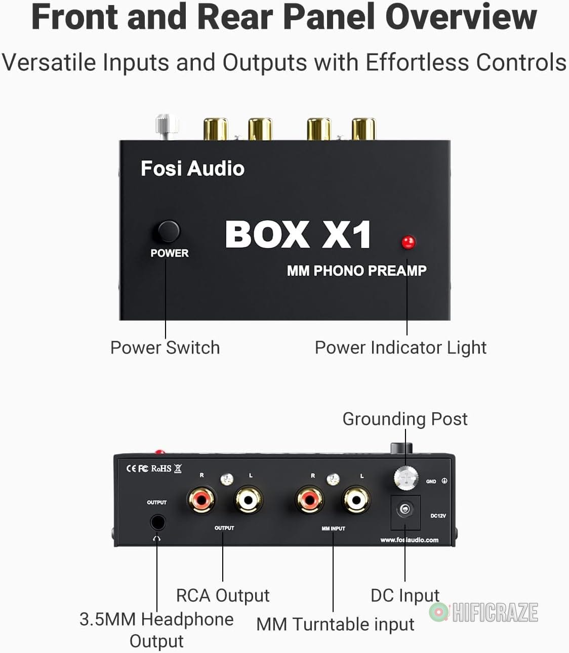 Specification: Fosi Audio Box X1 Phono Preamp for MM Turntable Mini Stereo Audio Hi-Fi Phonograph/Record Player Preamplifier with 3.5MM Headphone and RCA Output with DC 12V Power Supply