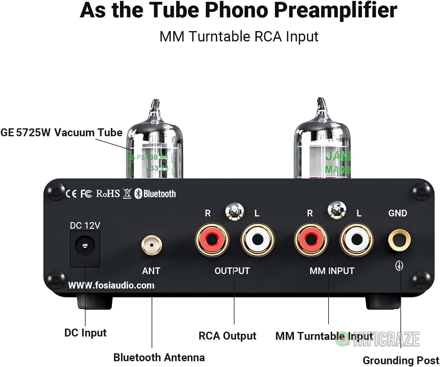Specification: Fosi Audio Box X3 Bluetooth 5.0 Phono Preamp Turntable Preamplifier 5725W Tube for MM Phonograph Mini Stereo Hi-Fi Pre-Amplifier for Home Audio Record Player Sound System