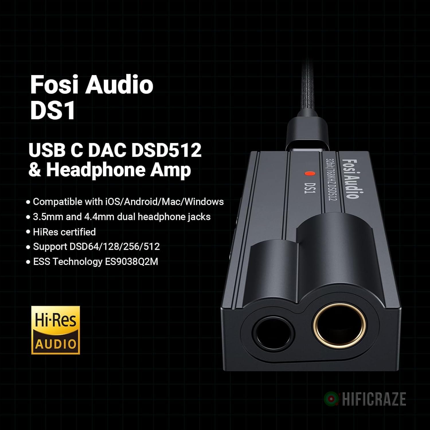Specification: Fosi Audio DS1 USB C DAC Headphone Amp DSD512 ES9038Q2M HiFi Mini Audio Adapter Supports 32bit/768kHz with 4.4MM and 3.5MM Dual Headphones Outputs Compatible with Smartphones/Laptop/PC/Music Players