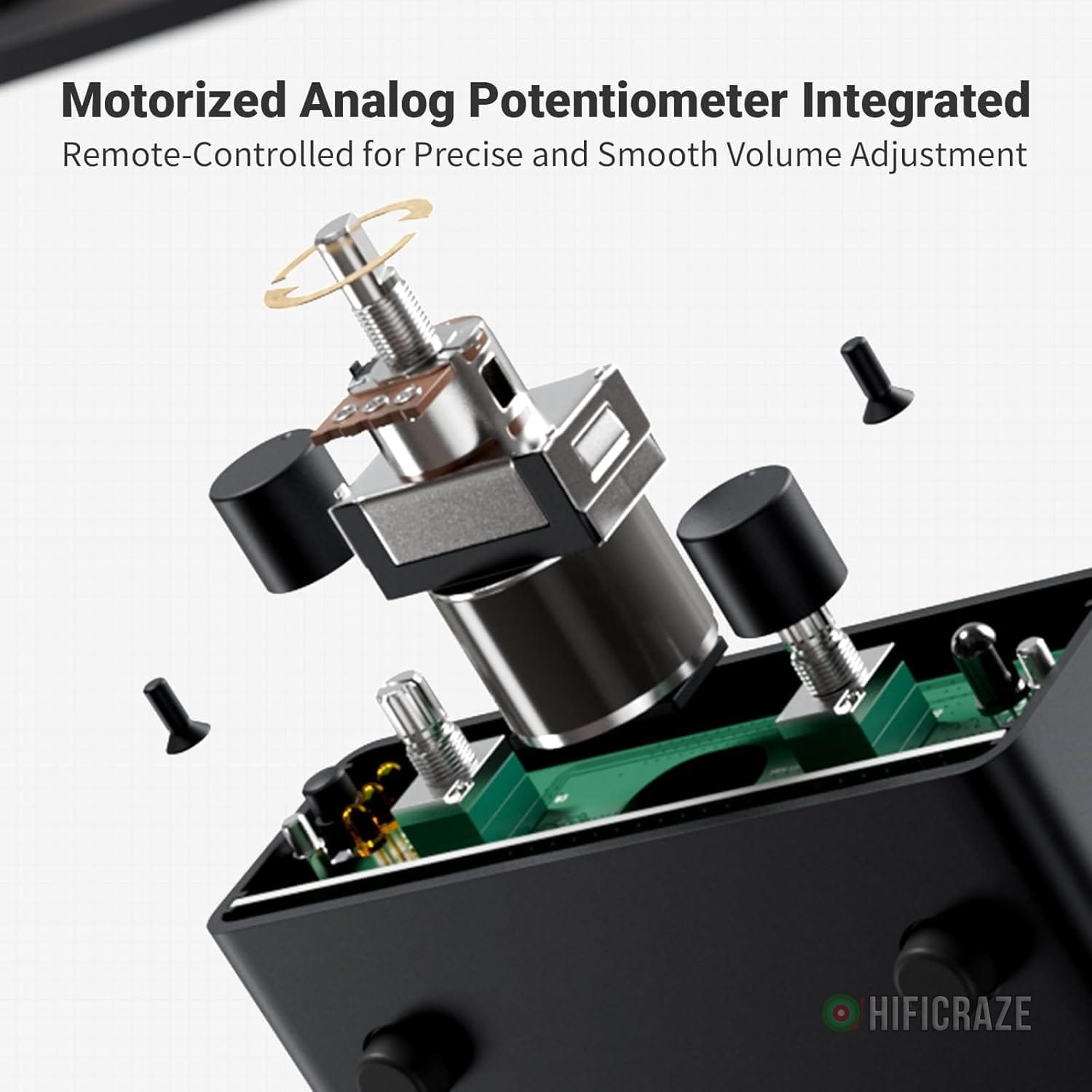 - Motorized Potentiometer: Smooth volume adjustments that minimize noise and distortion.