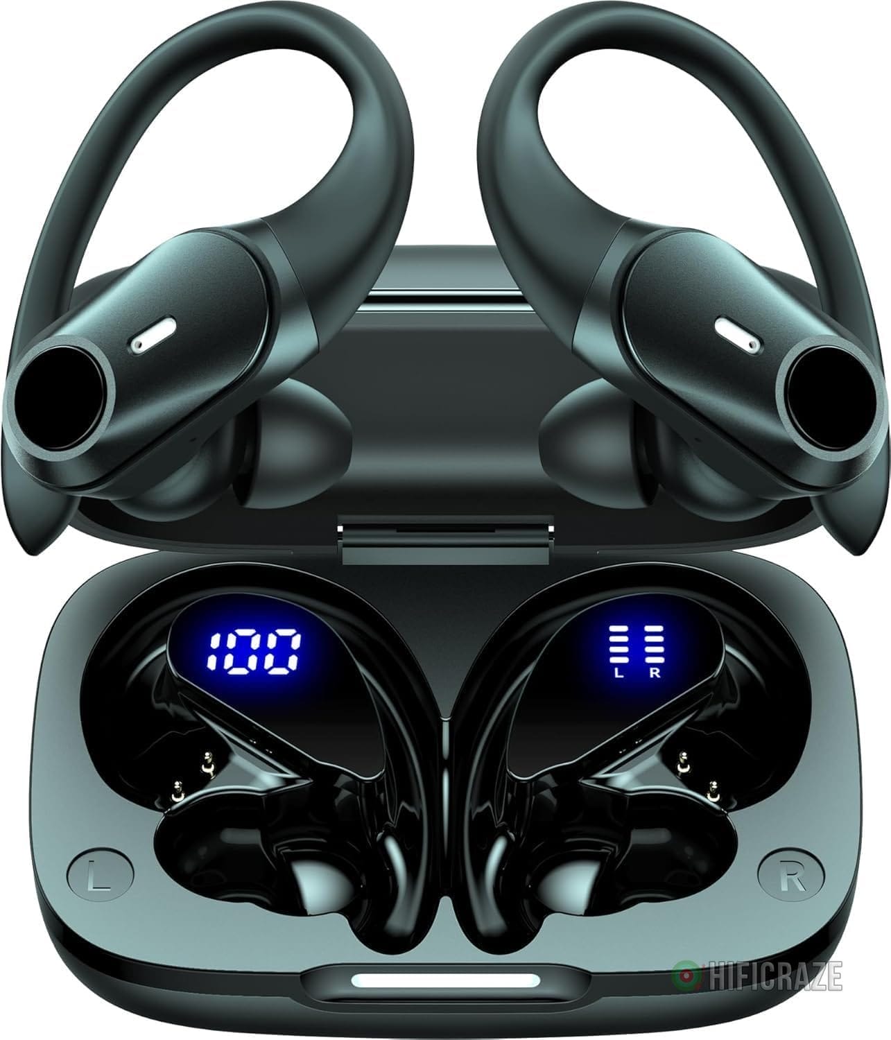 Specification: GOLREX Active Noise Cancelling Ear Buds Wireless Earbuds Bluetooth Headphones with 80H Playtime LED Display Charging Case, Over Ear Earphones with Hooks for Sports Running Gym Workout Black