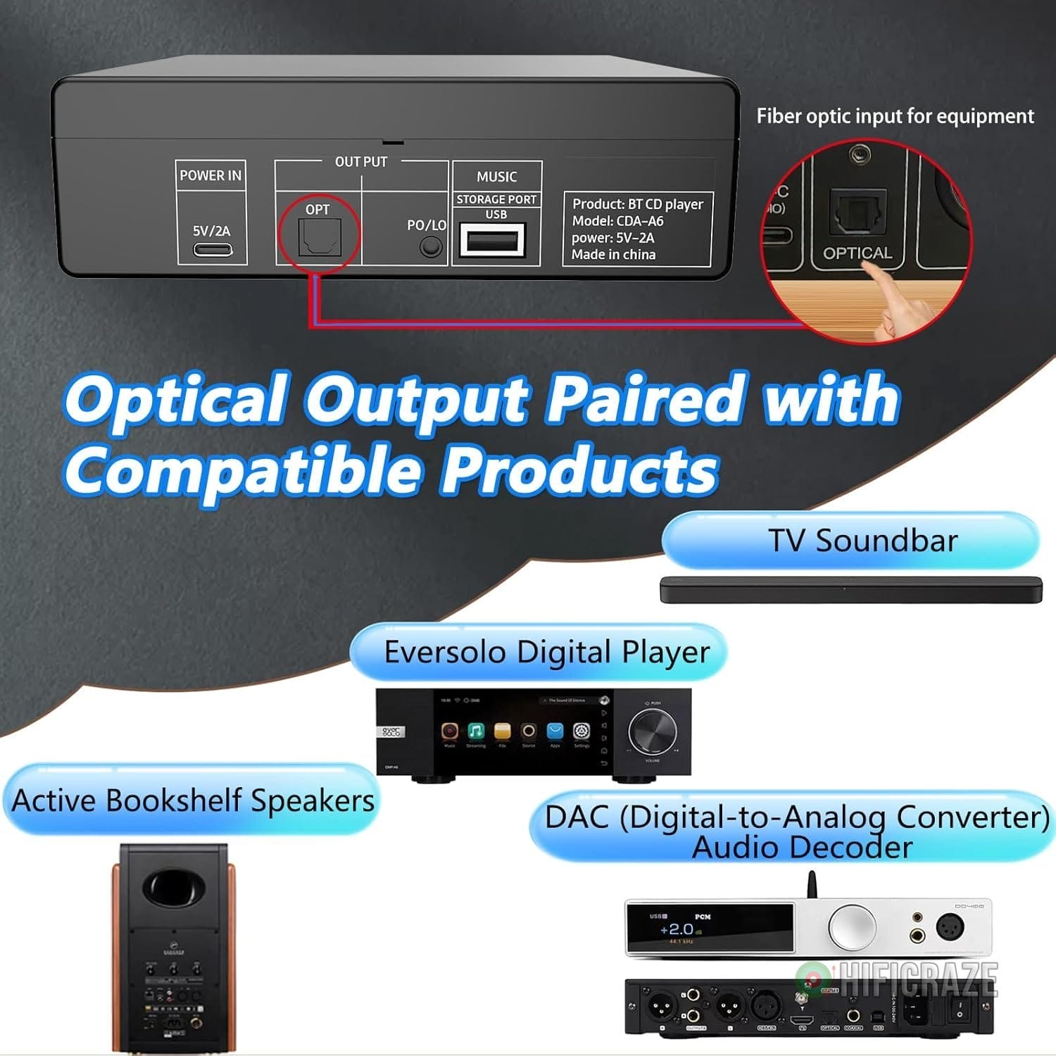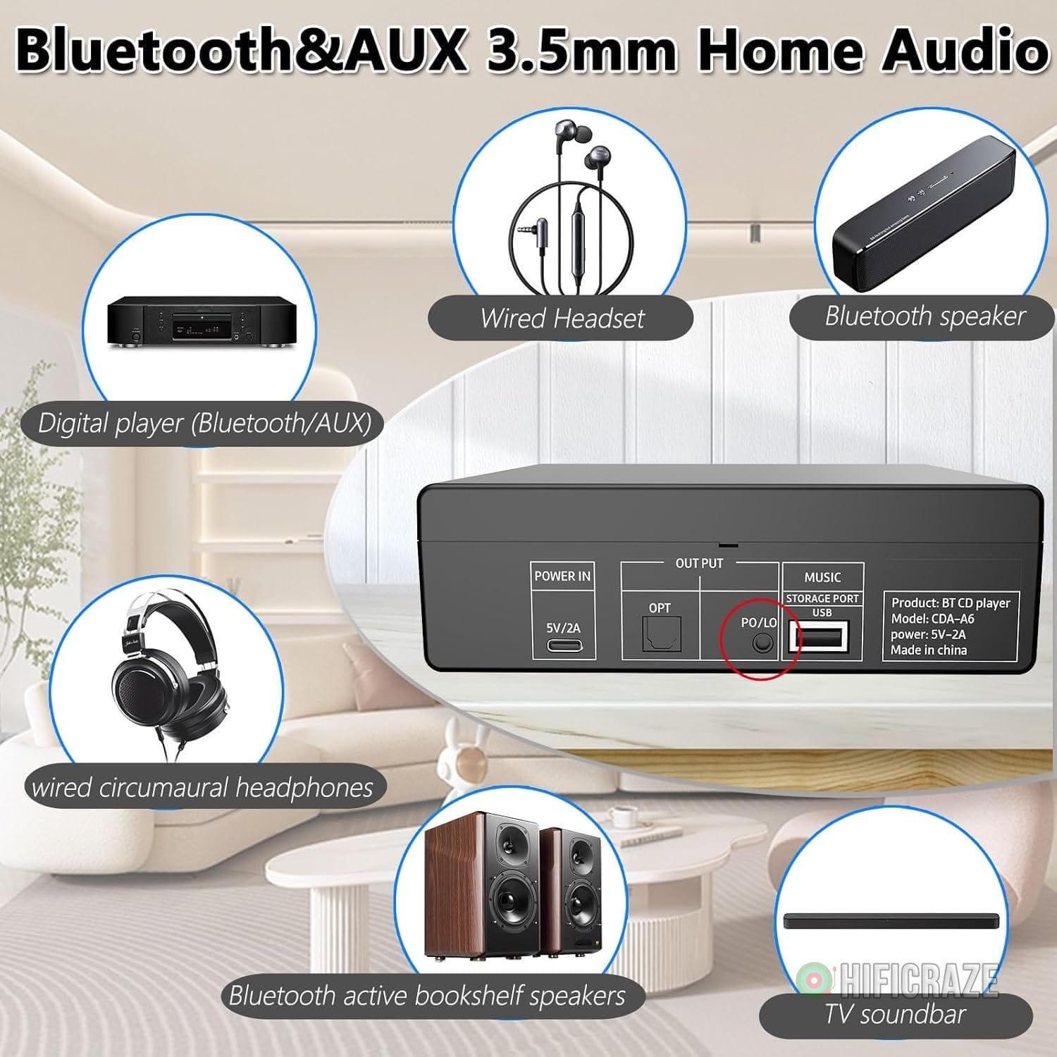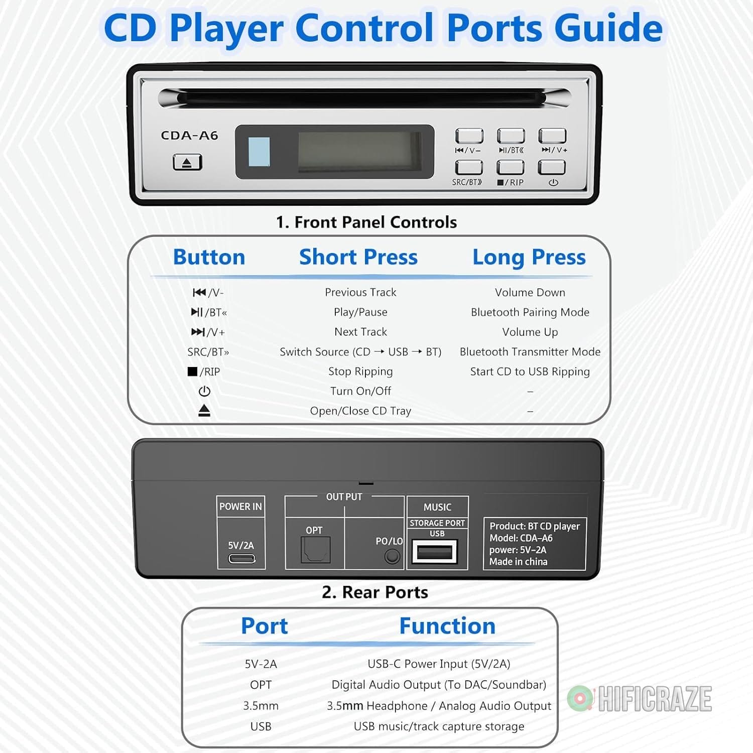 Specification: High-Fidelity CD Player with Bluetooth 5.3 | Supports WAV Ripping from Original CD Tracks | USB Playback | 3.5mm Stereo & Optical Output (Silvery)(Remote Uses AAA Batteries – No Button Cells)