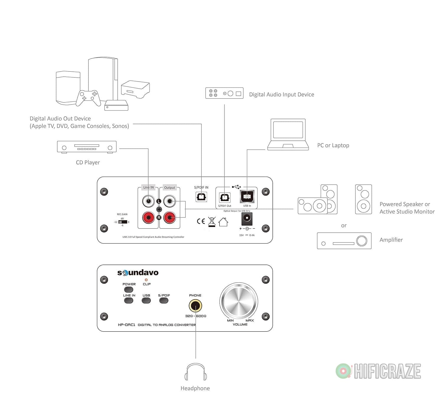 Be the first to review “HP-DAC1 Digital to Analog Converter/Headphone Preamp DAC with S/PDIF, Line, USB Input for PC/Laptop”