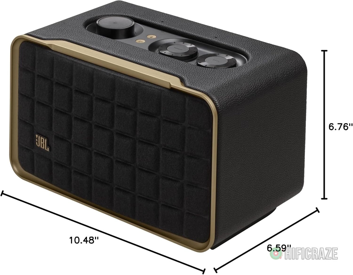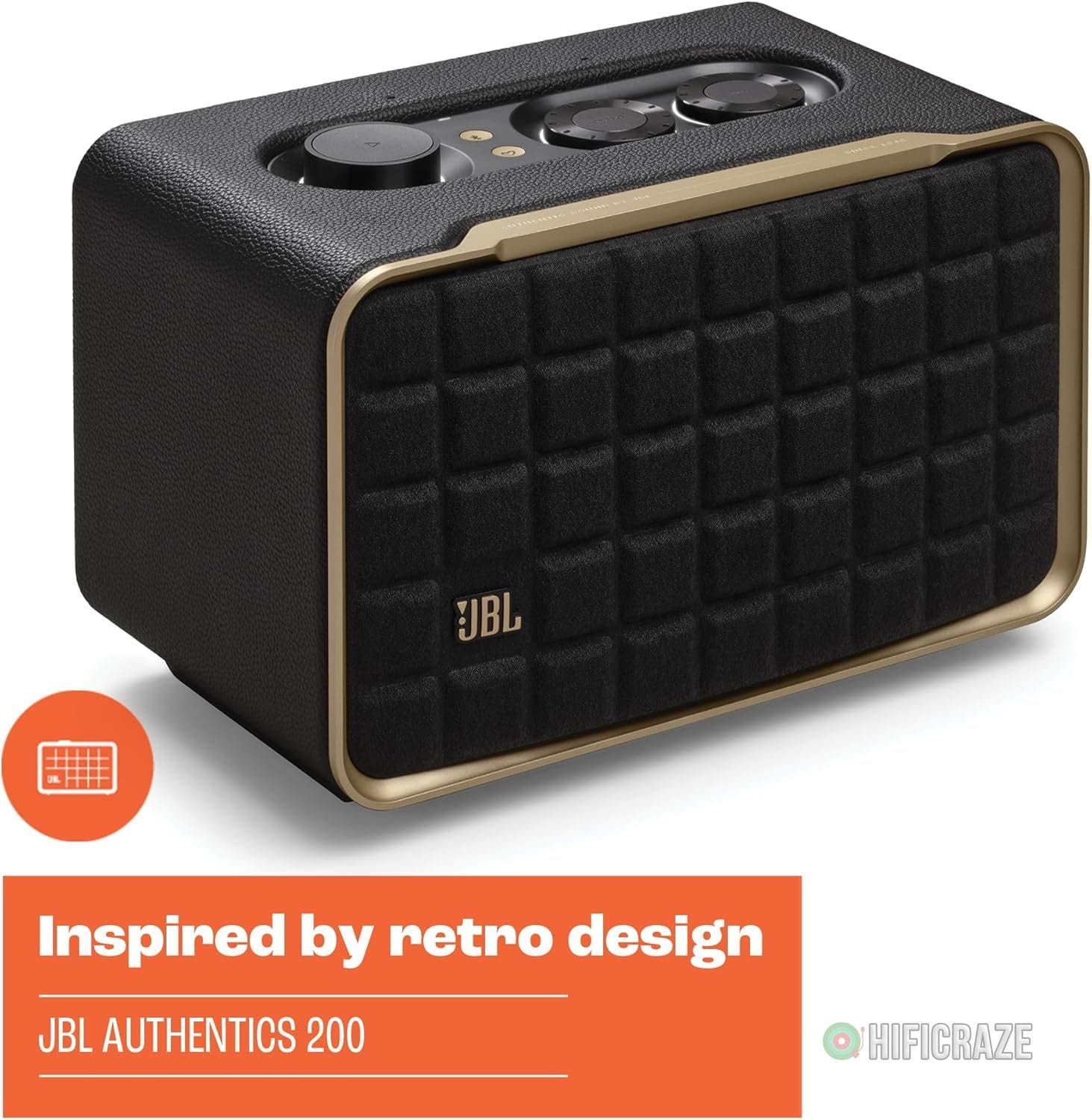 Specification: JBL Authentics 200 – Retro Style Smart Home Speaker with Built in Wi-Fi, Bluetooth and Voice Assistants, Alexa and Google Assistant, Multi-Room Playback, Automatic self tuning (Black/Gold)