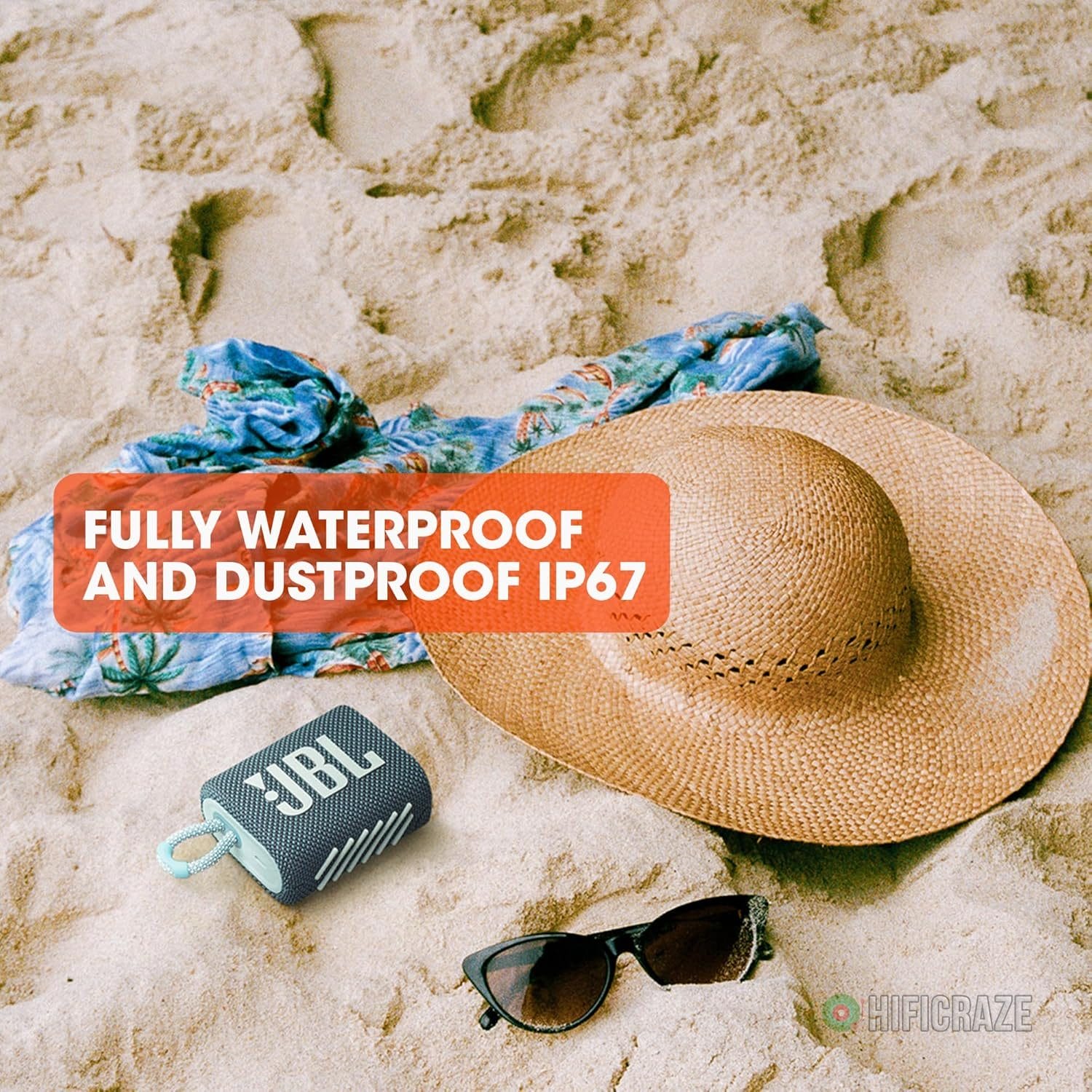Take your music anywhere! The JBL Go 3 is fully waterproof and dustproof, making it suitable for use by the pool, in the park, or even in the shower.