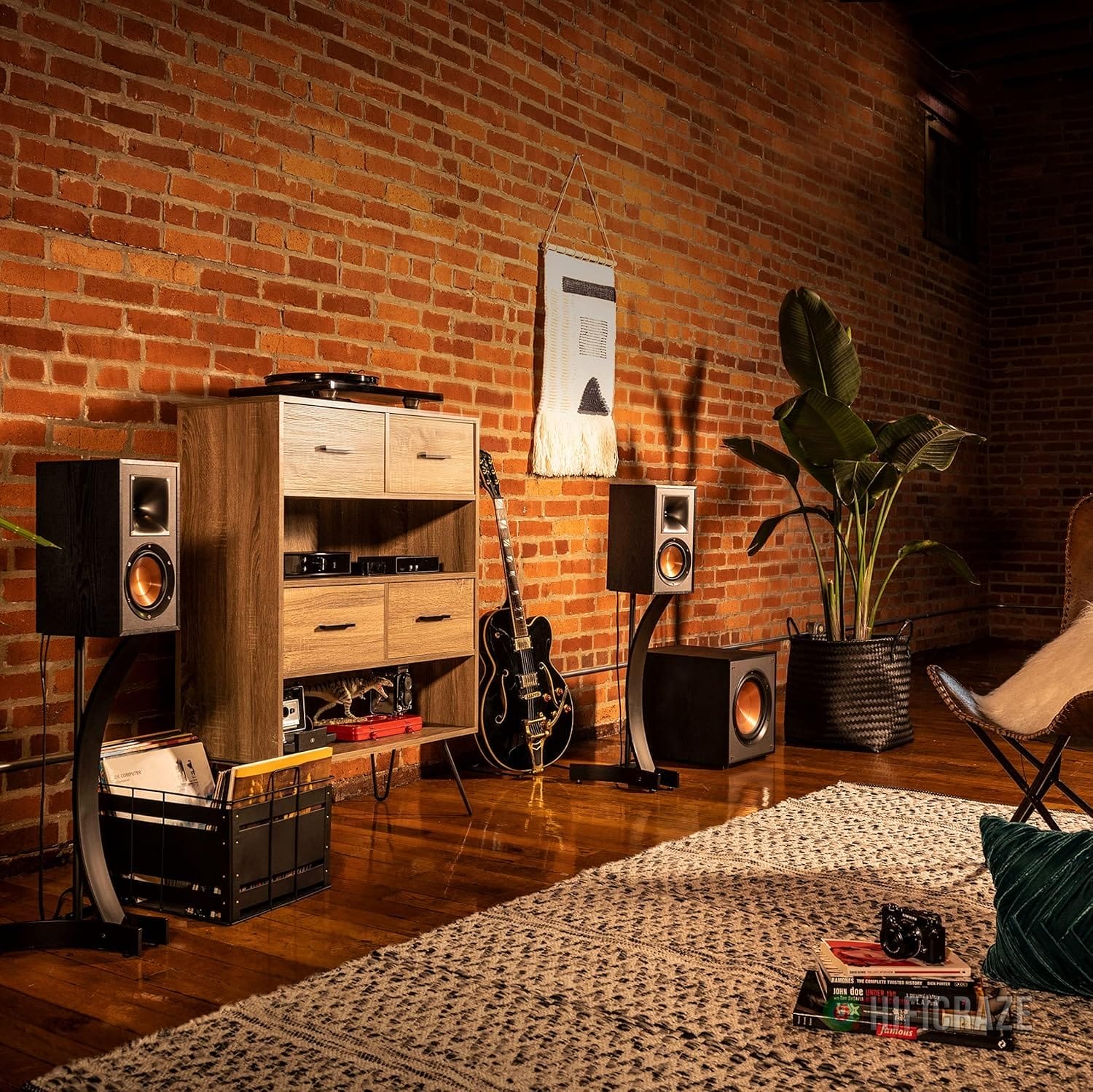 These bookshelf speakers are an excellent choice for audiophiles and casual listeners alike. Sold in pairs, these speakers feature 1″ aluminum LTS tweeters, 90×90 square Tractrix horns, and dual 5.25″ spun-copper IMG woofers. The bass-reflex design incorporates a rear-firing port, making them ideal for smaller spaces.