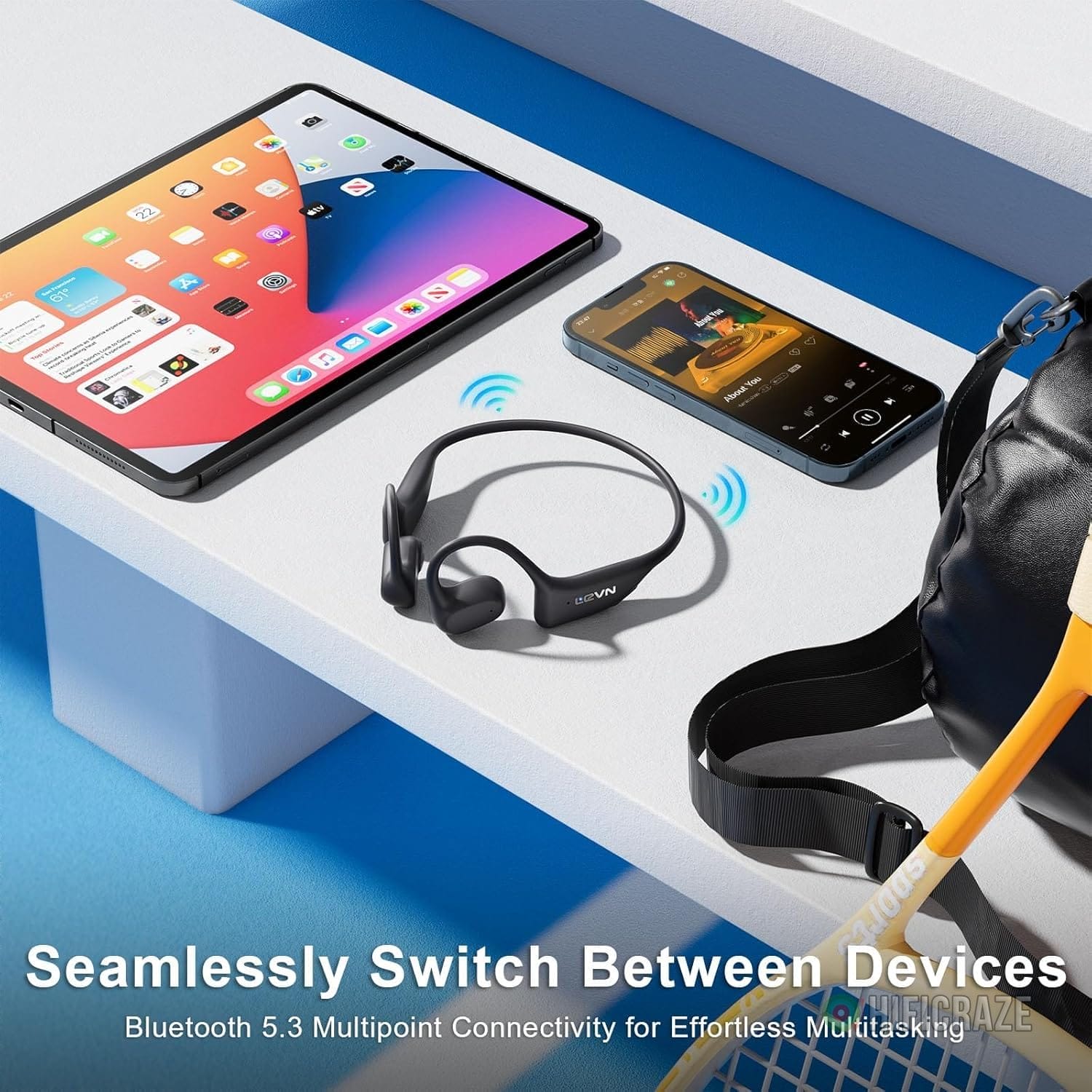 Thanks to the Bluetooth 5.3 technology, the LEVN Open Ear Headphones support multi-point connectivity, allowing you to pair with two devices simultaneously. This feature is particularly useful for those who need to manage calls and music seamlessly.
