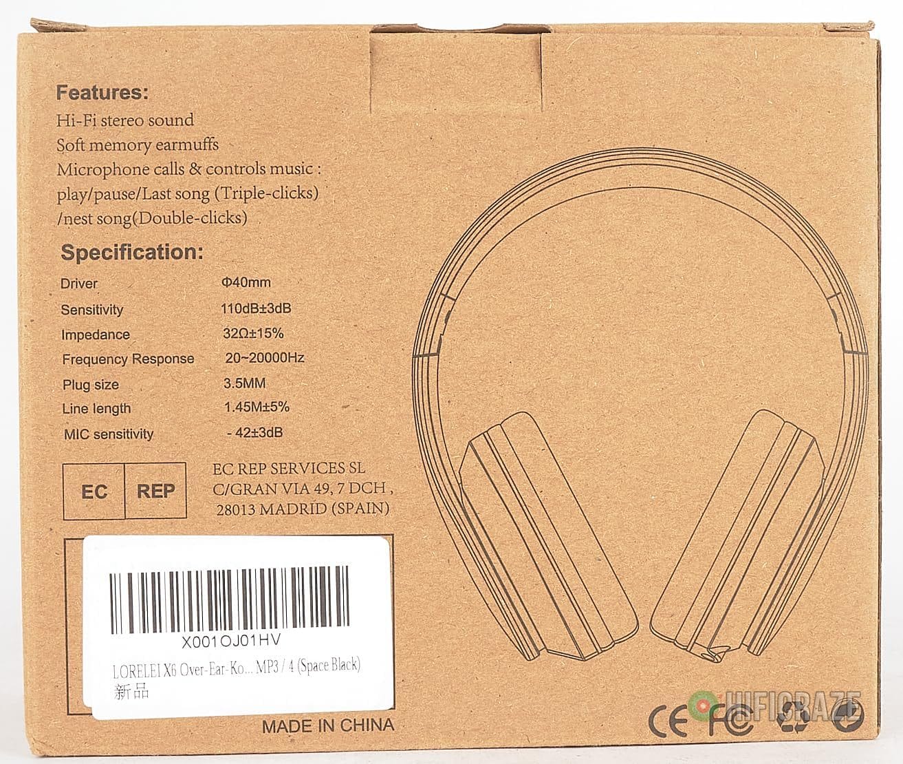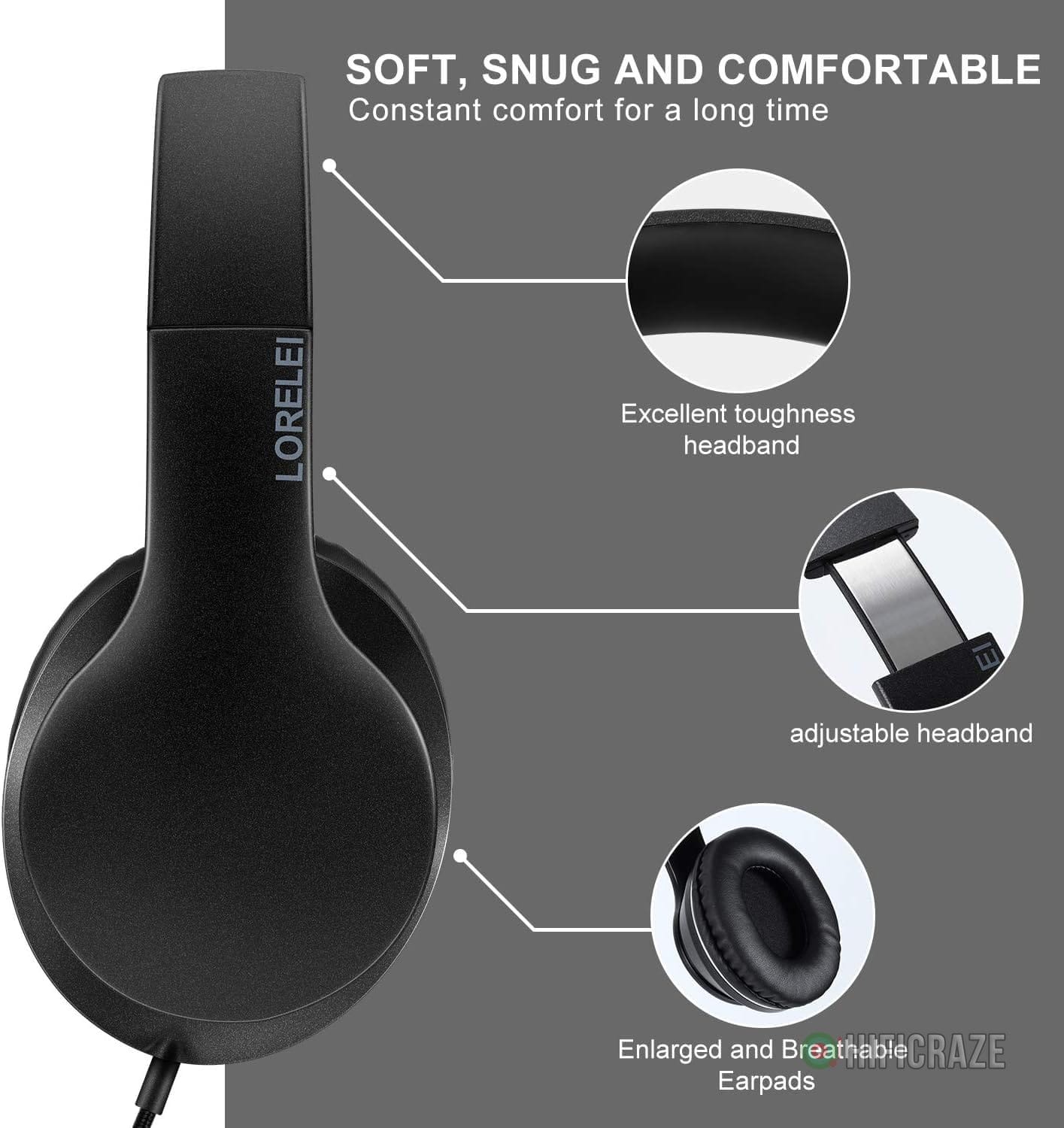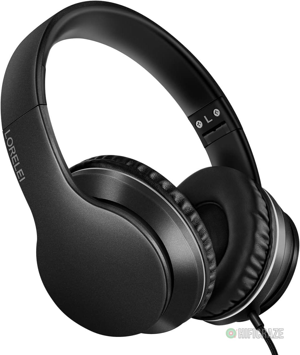 Specification: LORELEI X6 Over-Ear Wired Stereo Bass Headphones with Microphone, Lightweight, Foldable & Portable with 1.45M No-Tangle for Smartphone, Tablet, MP3/4, Space Black