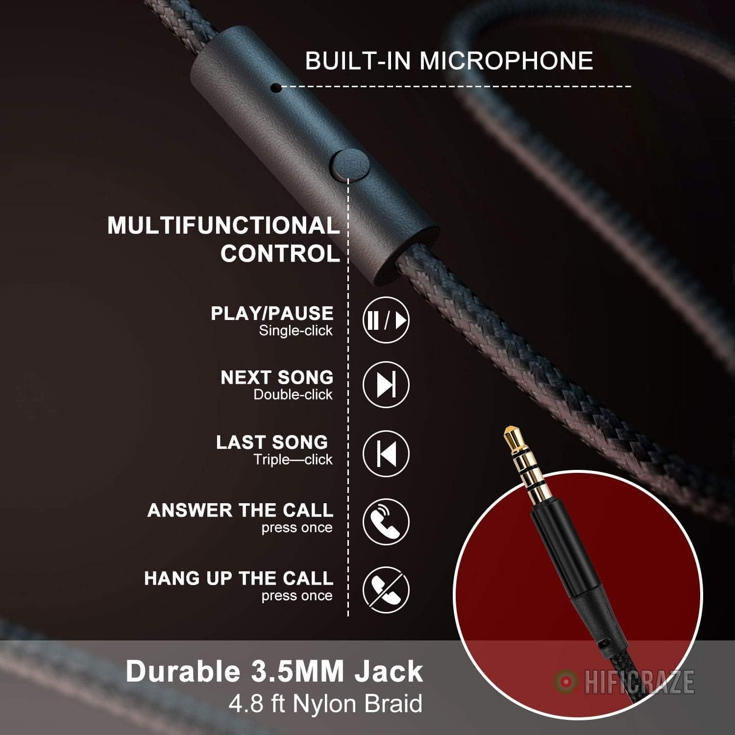 In-line Control: Features an in-line microphone for calls and track controls, compatible with various devices including smartphones, laptops, and other 3.5mm audio jack devices.