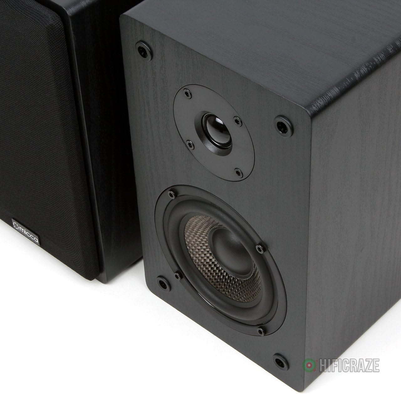- Balanced woven carbon fiber woofer for enhanced transient and impactful bass.