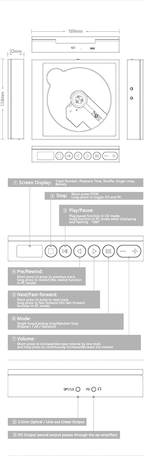 Specification: MOONDROP DISCDREAM 2 Portable CD Player USB Desktop Sound Card Function Optical Digital Output