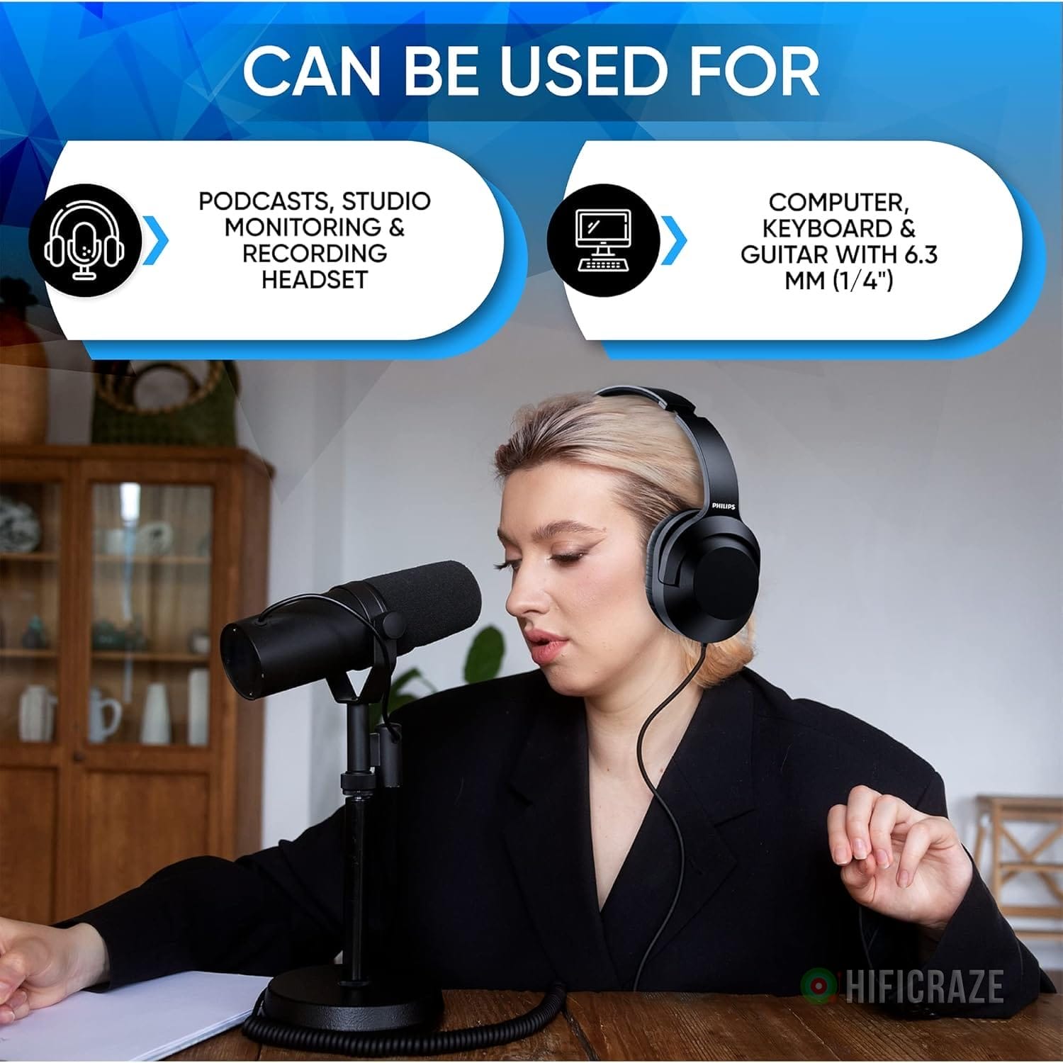Specification: Philips Over Ear Wired Stereo Headphones for Podcasts, Studio Monitoring and Recording Headset for Computer, Keyboard and Guitar with 6.3 mm (1/4″) Add On Adapter