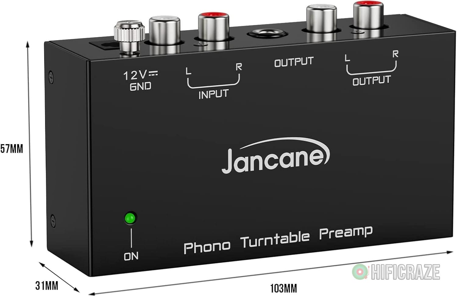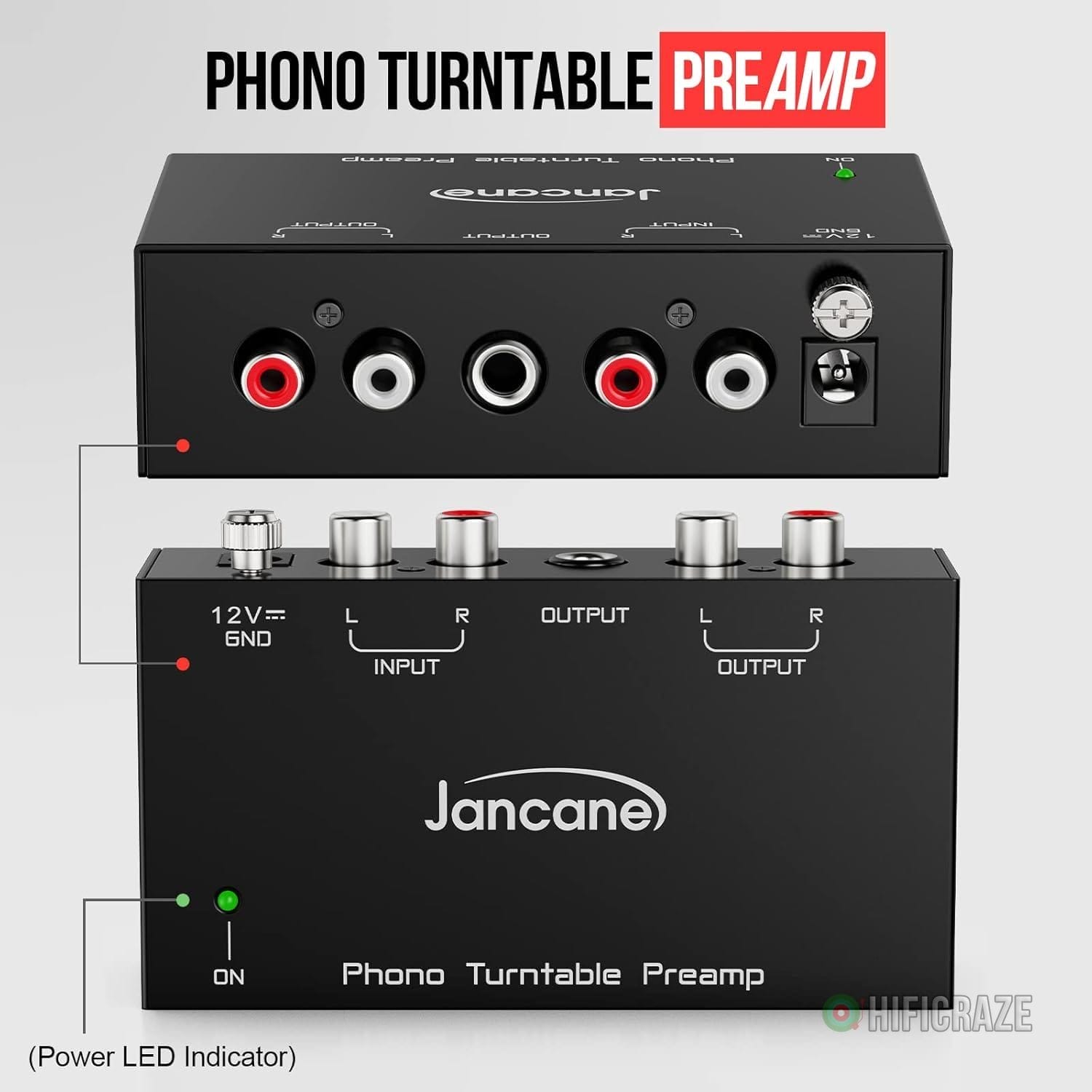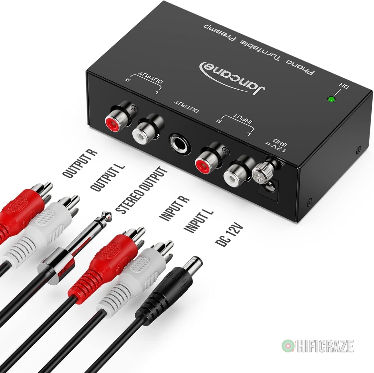 Specification: Phono Preamp for Turntable- Mini Electronic Audio Stereo Phonograph Preamplifier with RCA Input, RCA/TRS Output, Low Noise Operation, with 12 Volt DC Adapter