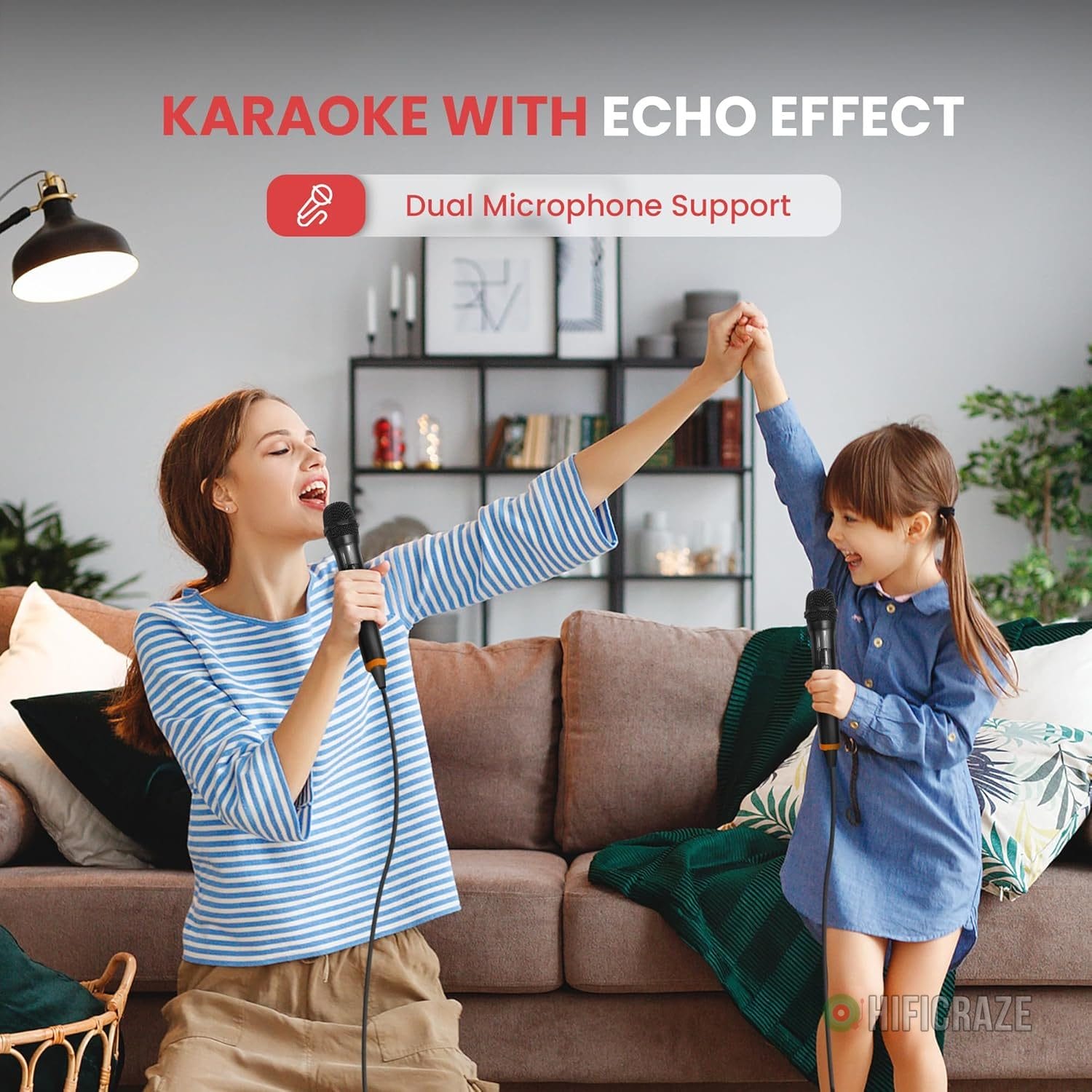 - Multiple Inputs: Offers various connection options including RCA, USB, MP3, FM tuner, and AUX. Equipped with two microphone inputs with echo effects for karaoke enthusiasts.
