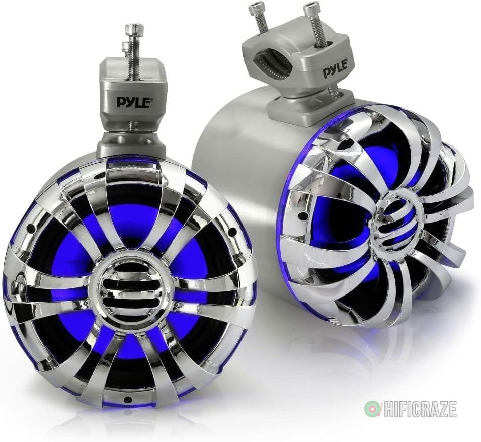 Specification: Pyle Marine Speakers – 5.25 Inch Waterproof IP44 Rated Wakeboard Tower and Weather Resistant Outdoor Audio Stereo Sound System with Built-in LED Lights – 1 Pair in Silver (PLMRWB50L)