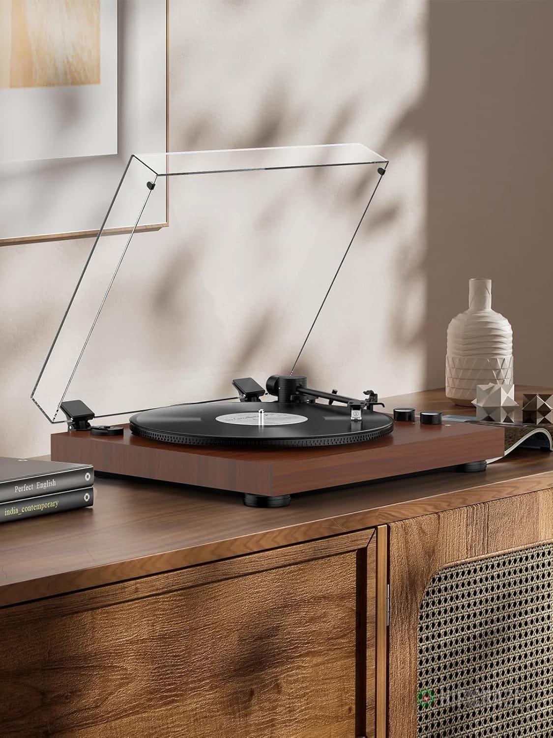 - Belt Drive 2-Speed: Supports both 33 & 45 RPM records with a belt-driven motor.
