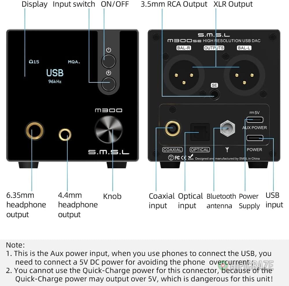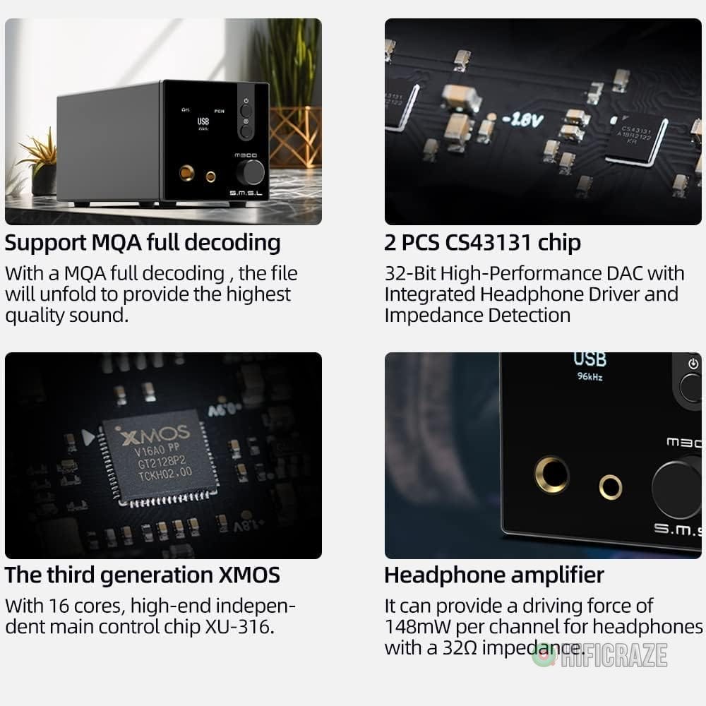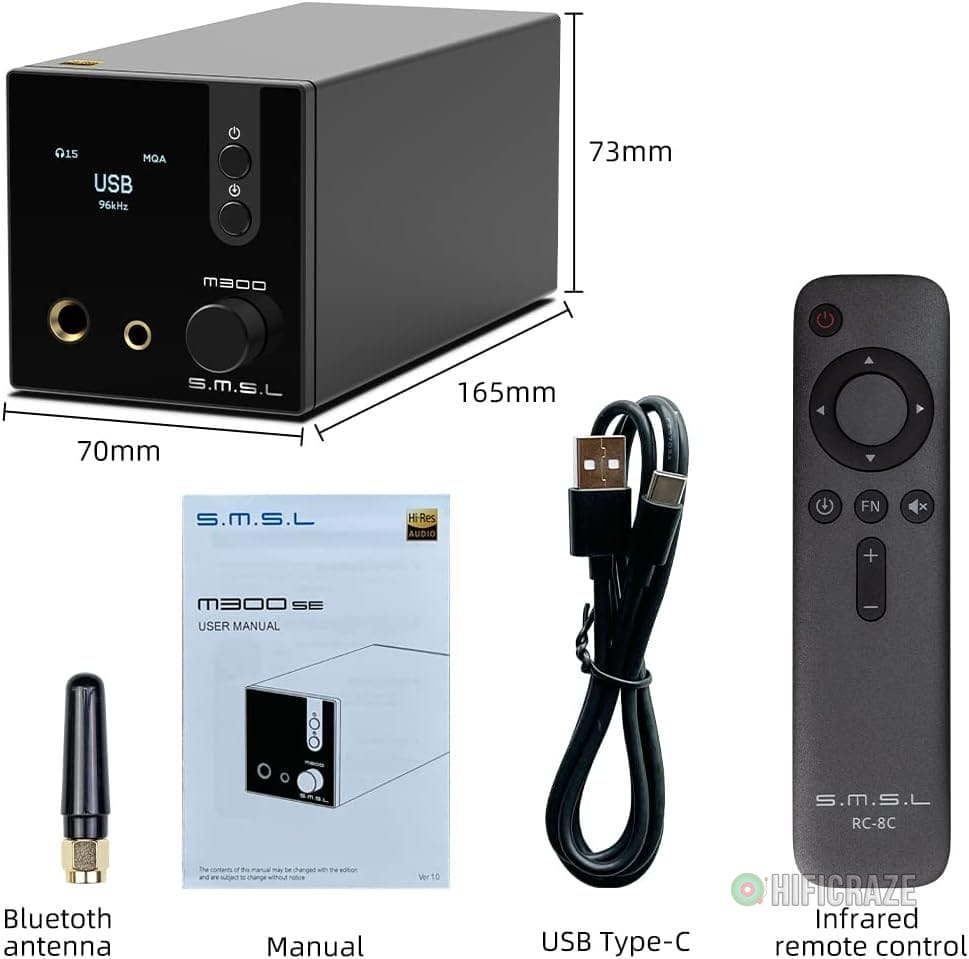 Specification: S.M.S.L Upgraded M300SE HiFi Headphone Amplifier, 2PCS of CS43131 MQA Audio DAC, USB/Optical/Coaxial/Bluetooth Input DSD MQA XMOS Balanced XLR Output THD+N 0.00013% with Remote Control