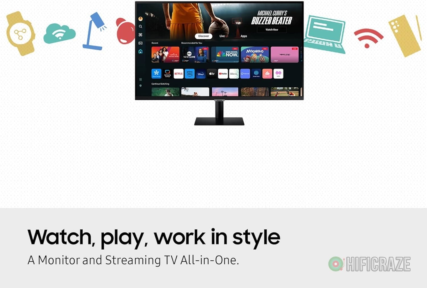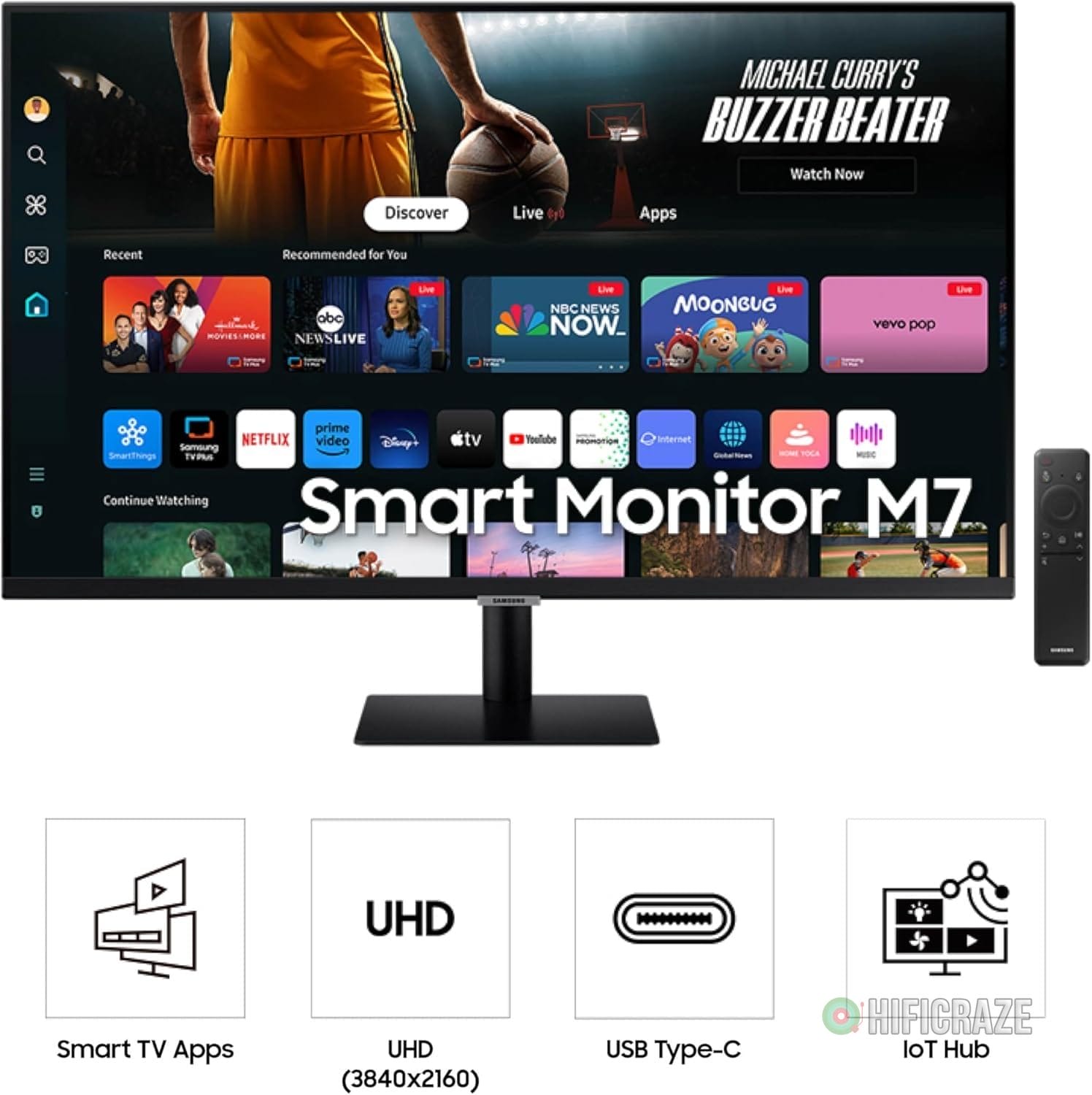 The Samsung Smart M7 Monitor is an innovative all-in-one streaming TV and desktop monitor that seamlessly blends functionality and entertainment. With its capability to stream content directly or tune into live TV channels, this monitor is designed for multitasking and enhanced user experience.