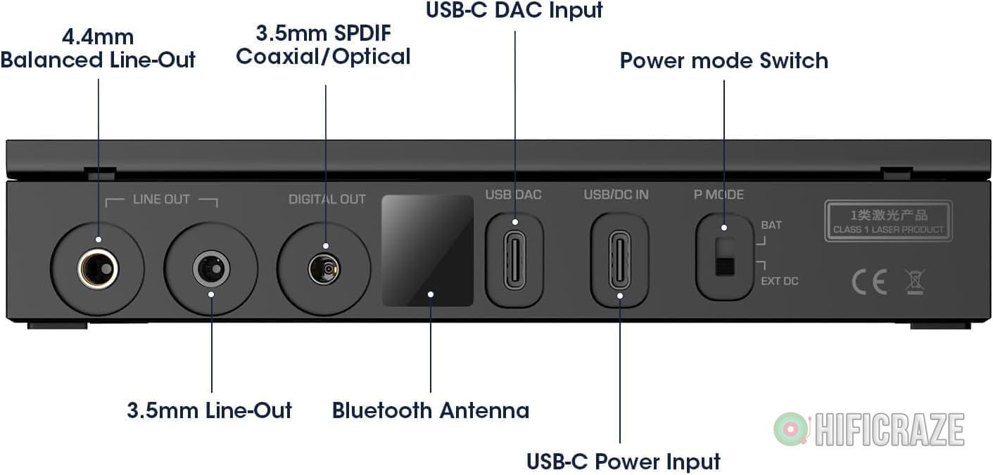 The player supports various input methods, including CD and USB DAC, while providing versatile output options: 3.5mm and 4.4mm headphone outputs, coaxial and optical fiber outputs, and Bluetooth 5.3 for wireless convenience. The 4.4mm balanced headphone output delivers up to 1220mW at 32Ω.