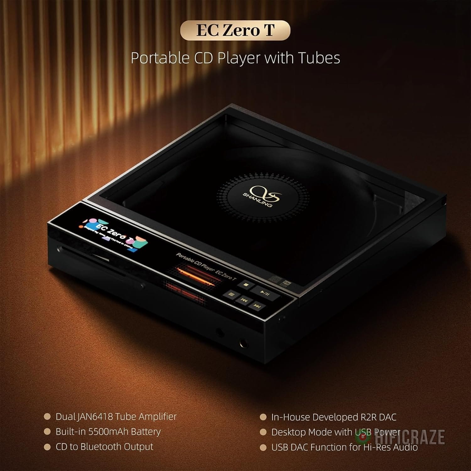 Specification: SHANLING EC Zero T Portable HiFi CD Player,The First R2R DAC+Dual JAN6418 Tubes CD Player,768kHz/32bit,DSD512,Support HD Bluetooth,3.5/4.4mm/Coaxial/LINE Output,Supports CD Ripping,5500mAh Battery