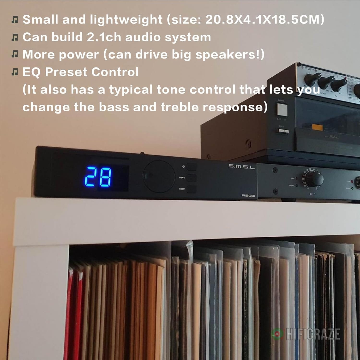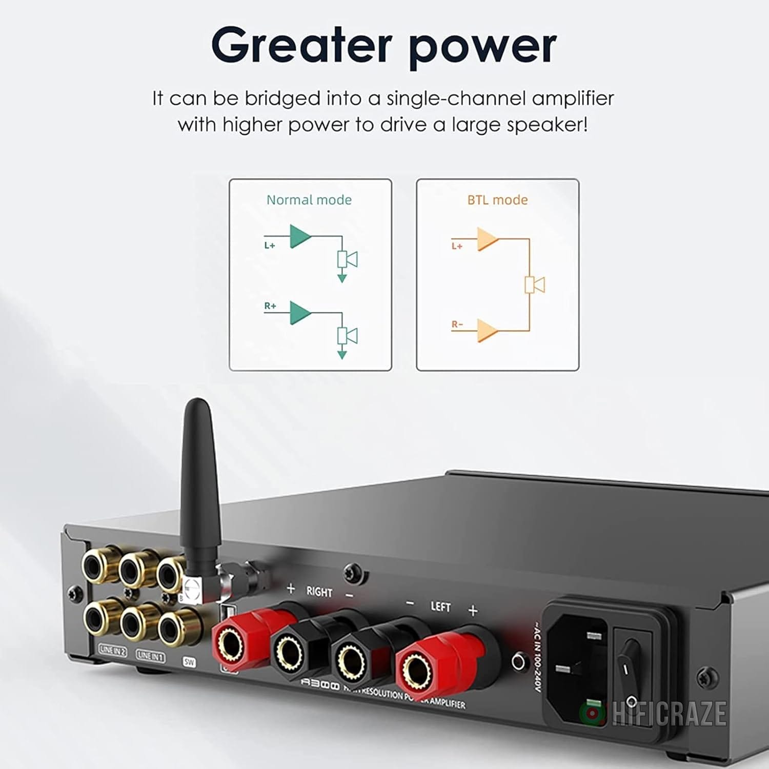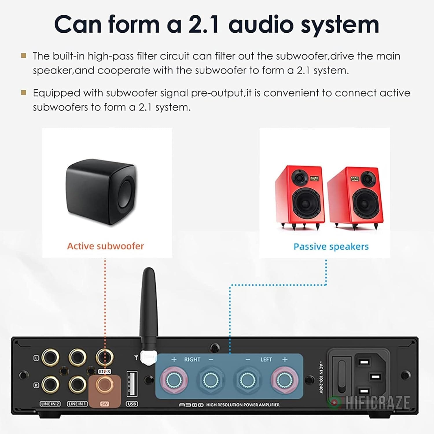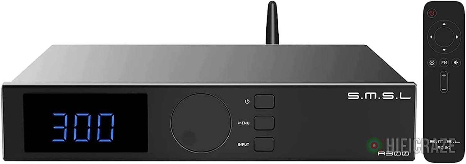 Specification: SMSL A300 HiFi Power Amplifier BTL Mode Bluetooth 5.0 2.1 Subwoofer 165W x 2 Class D Integrated Amp SDB Sound Effects Hi-Res Digital Audio Receiver with Remote Control THD+N 0.004%