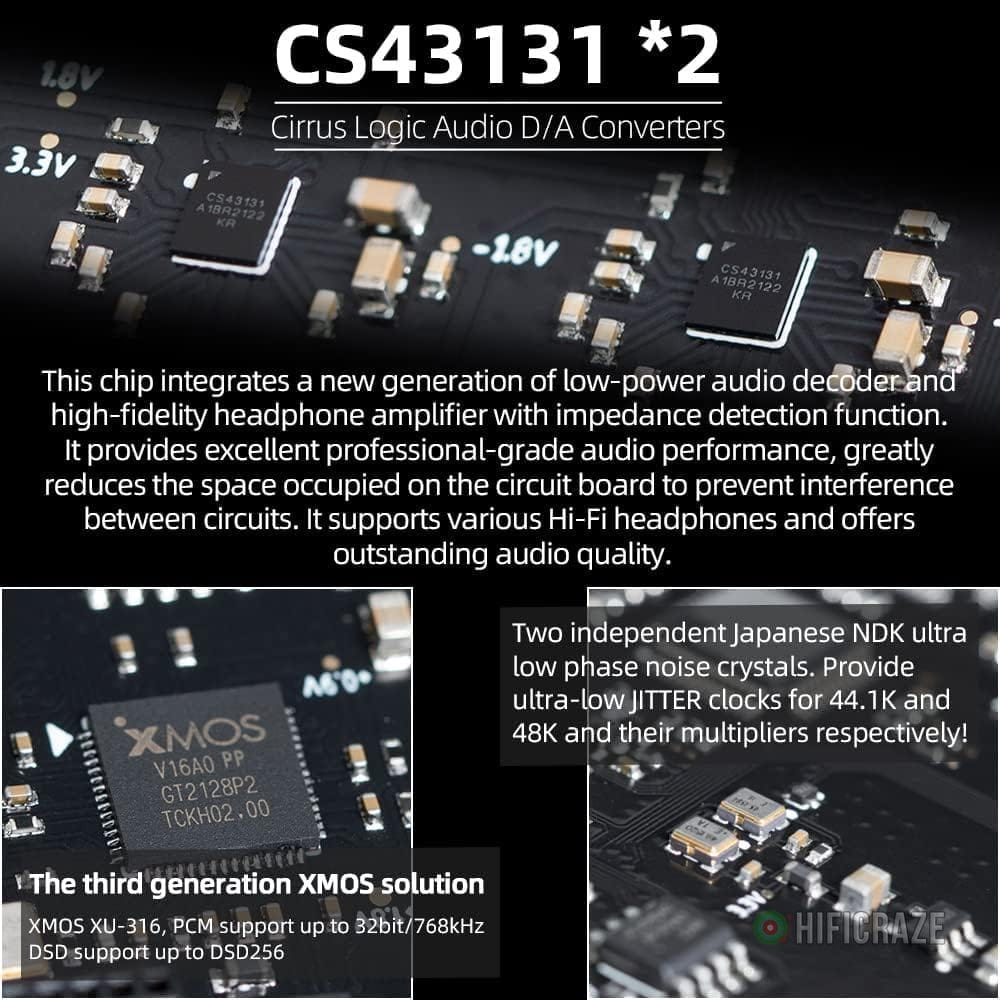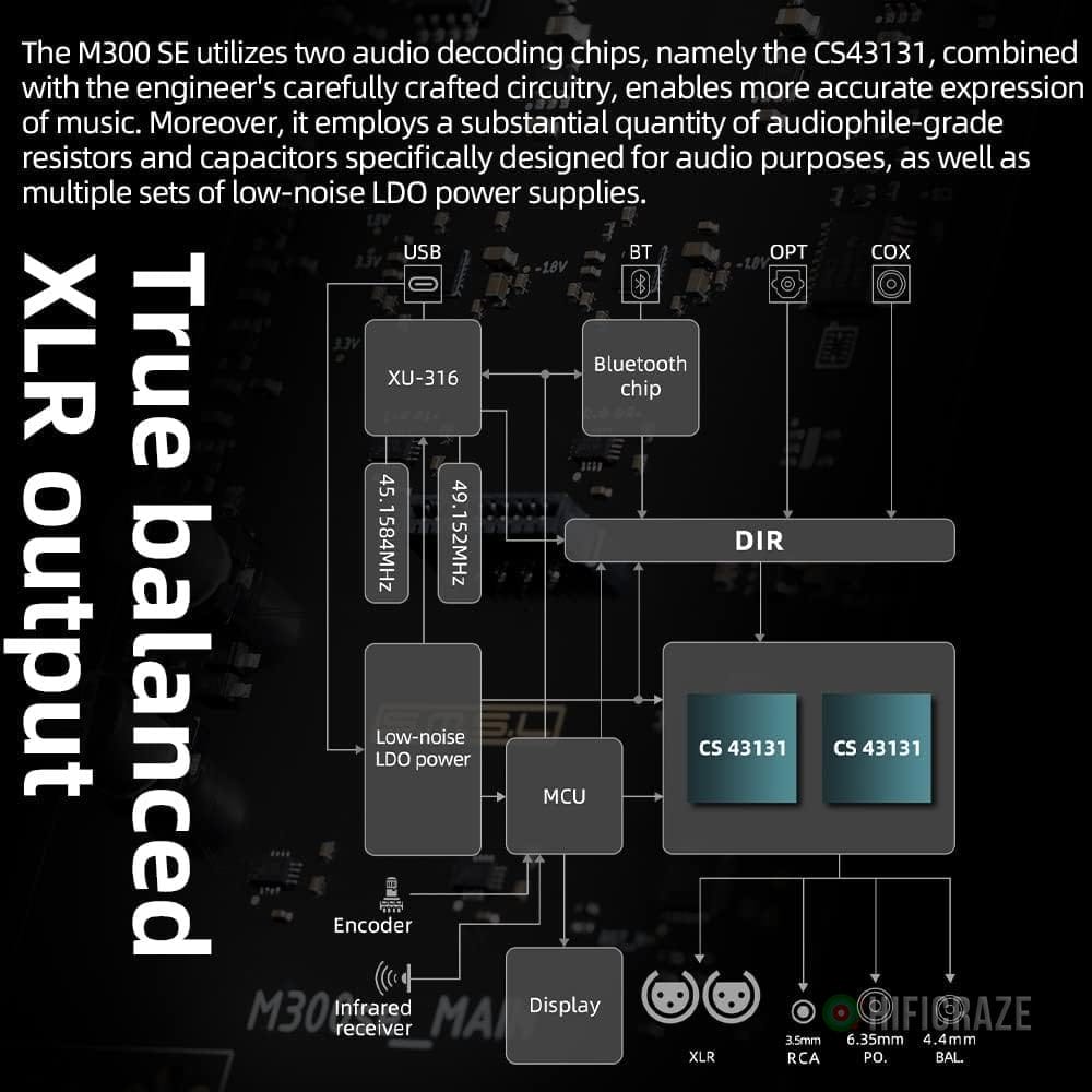 Specification: SMSL M300SE(Upgraded),Two CS43131 Chip MQA Audio Decoder,Ear Amplifier,Third Generation XMOS,PCM768kHz/32bit DSD256,DOP64,5 PCM Filters,True Balanced Output XLR,THD+N -117dB