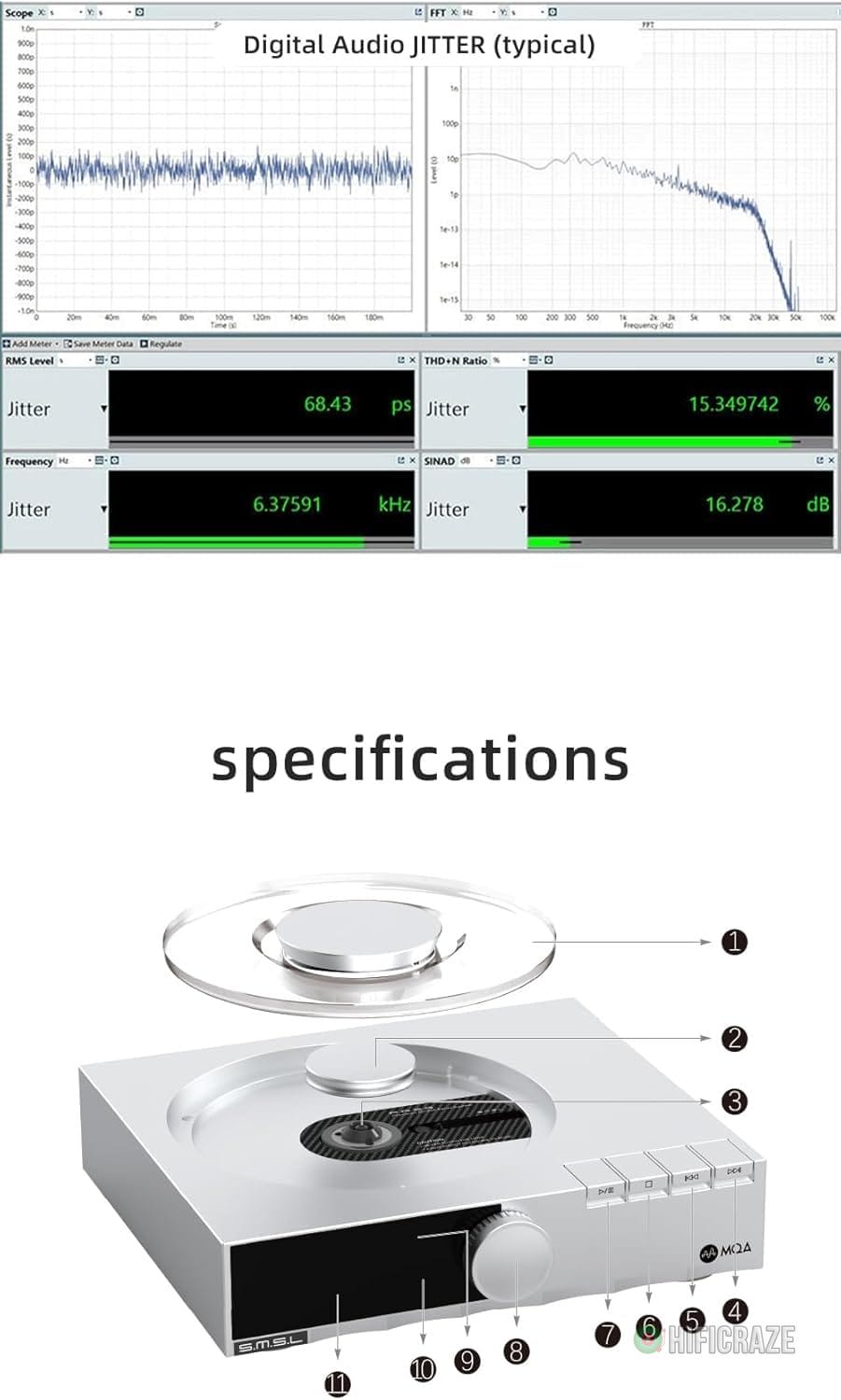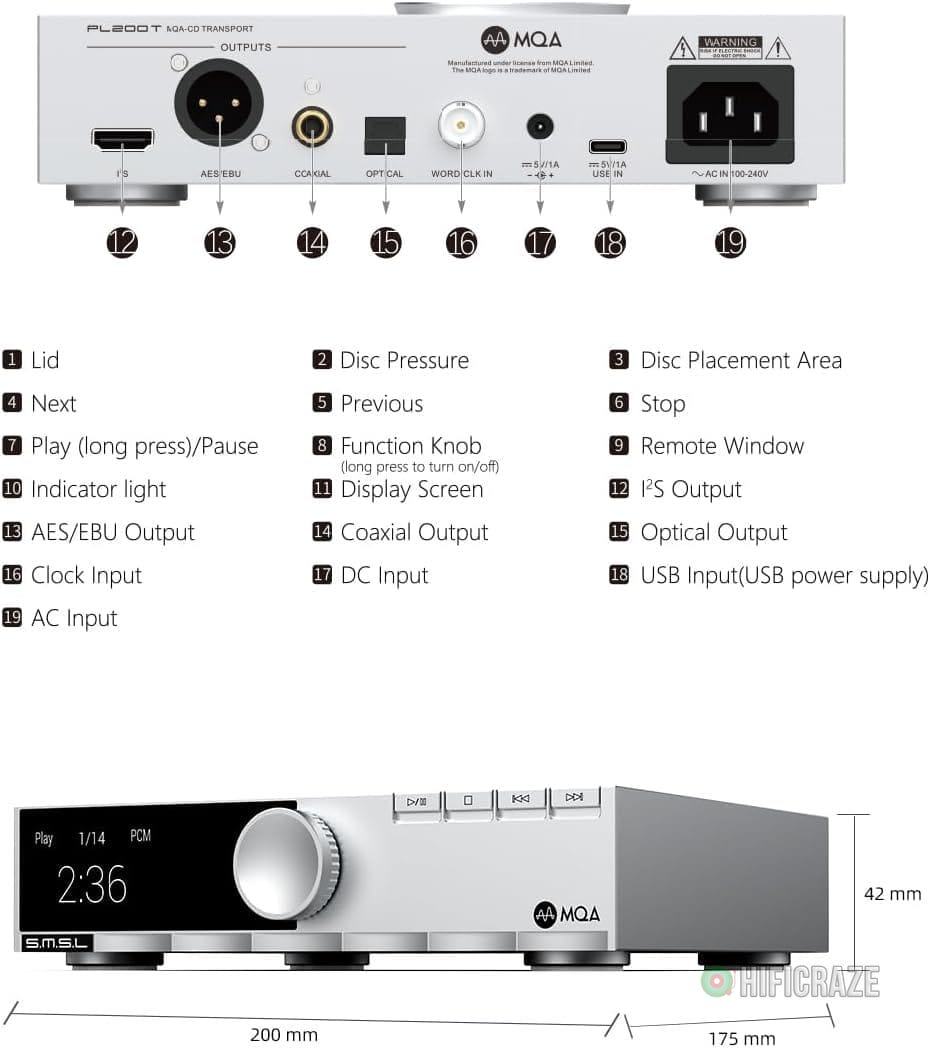 Specification: SMSL PL200T MQA-CD Player Clock Input HiFi Lossless Lid-Open Playback Mod Transport (Silver)