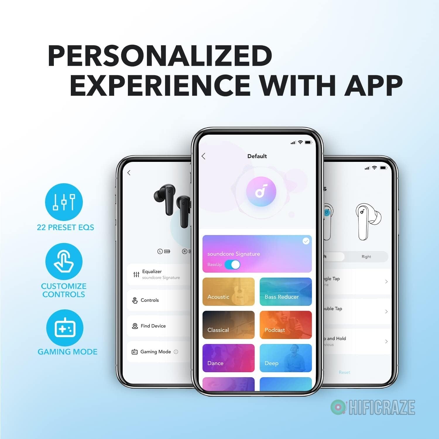 22 Preset EQs: Customize your listening experience with 22 different EQ settings, including the signature BassUp EQ, accessible via the Soundcore app.
